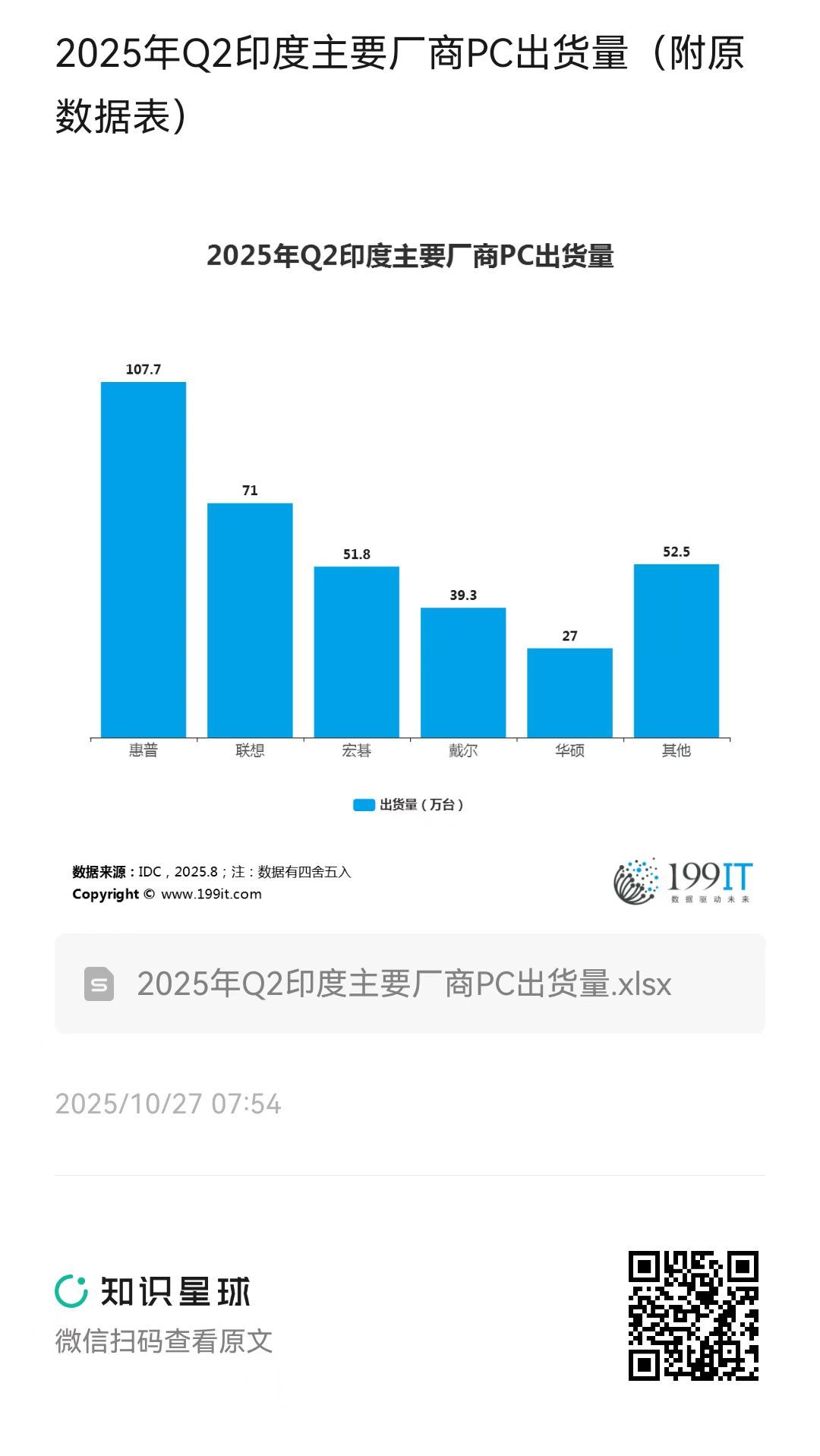 - 2025年Q2印度主要厂商PC出货量(附原数据表)
