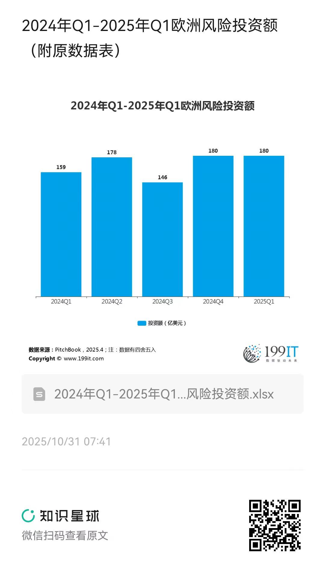 2024年Q1-2025年Q1欧洲风险投资额(附原数据表) ​​​