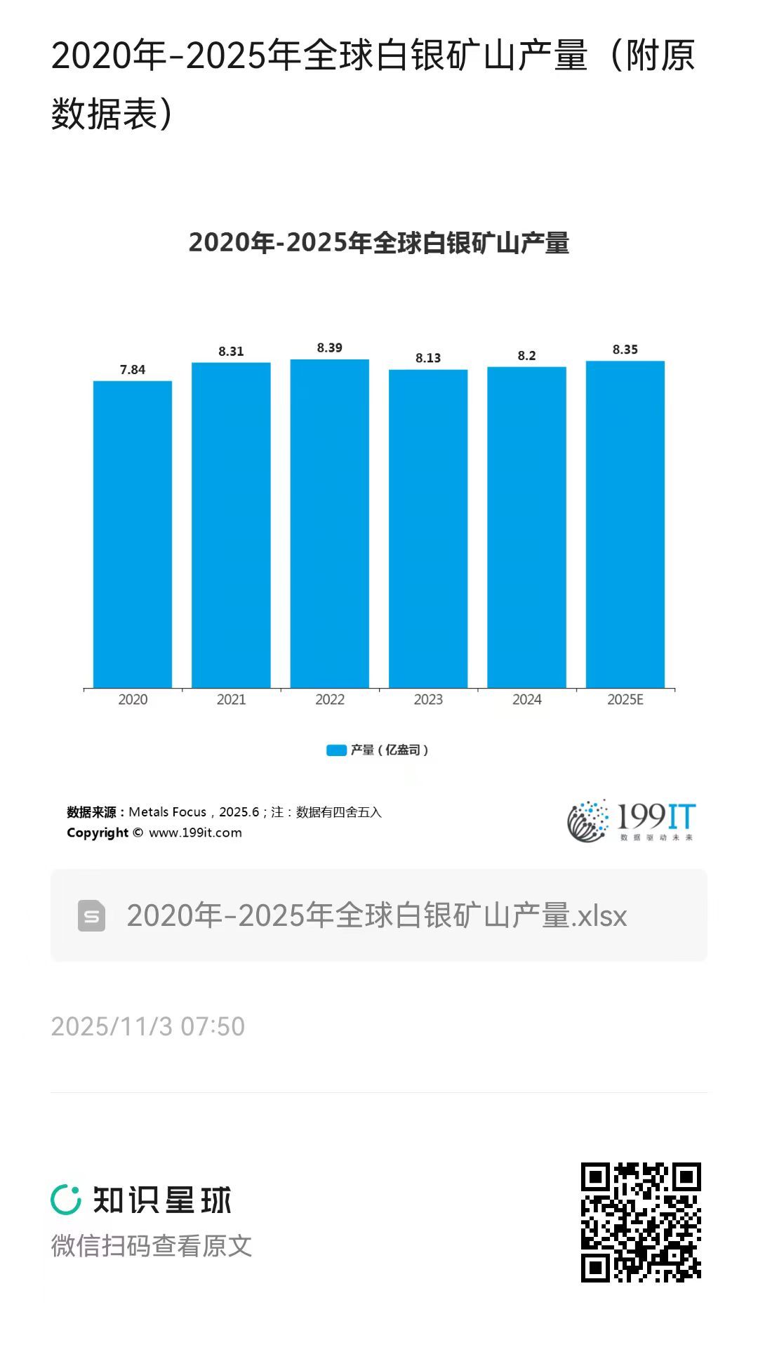 2020年-2025年全球白银矿山产量(附原数据表) ​​​