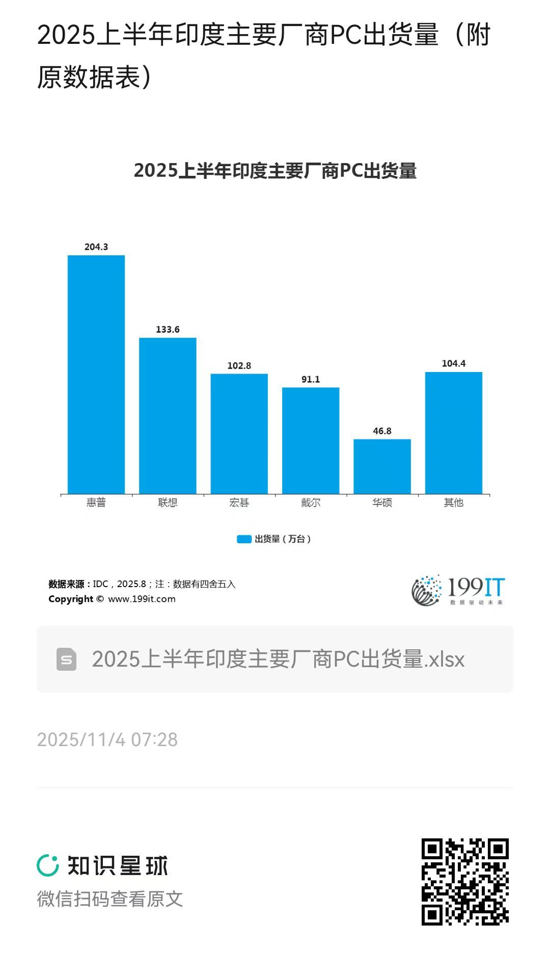 - 2025年Q2印度主要厂商PC出货量(附原数据表)