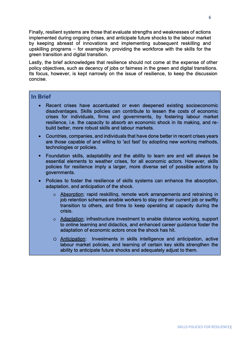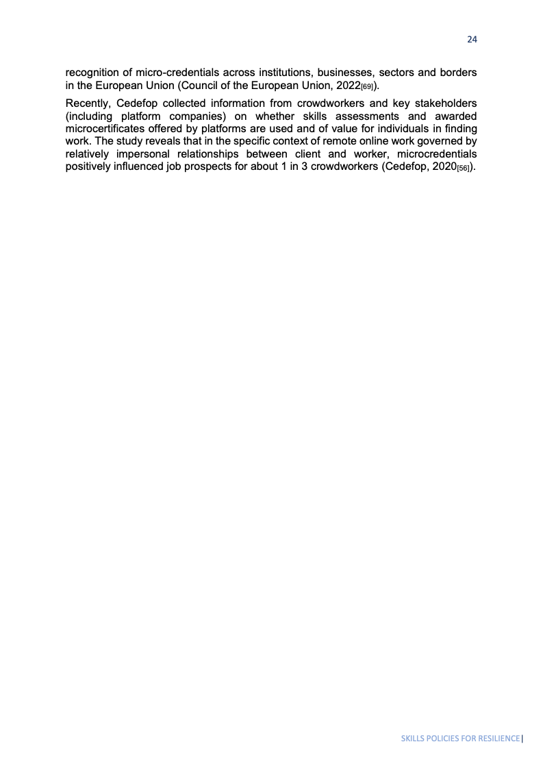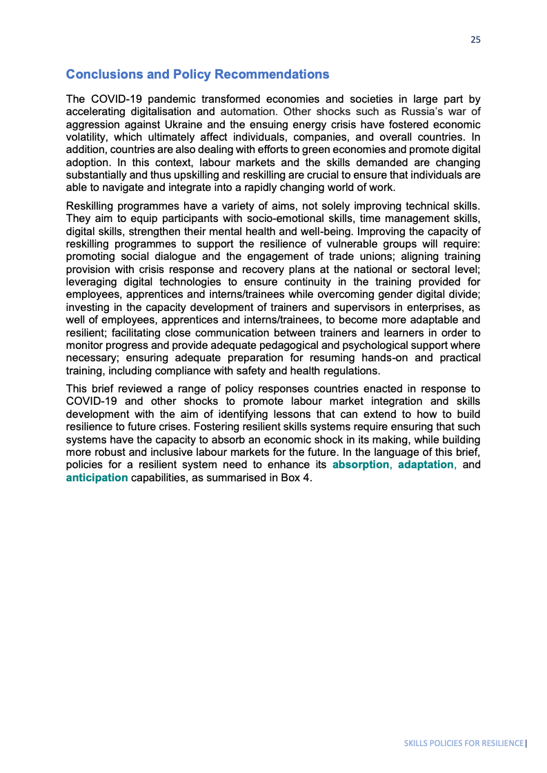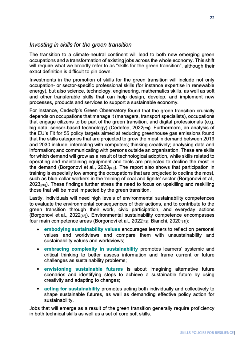 趋势洞察显示,未来技能系统需强化吸收、适应和预期能力。数字化和绿色转型将主导,46%欧盟成人缺乏基本数字技能,绿色职业需求科学、数字和软技能。终身学习和微凭证将成关键,推动包容性恢复,避免新数字鸿沟,确保脆弱群体韧性。