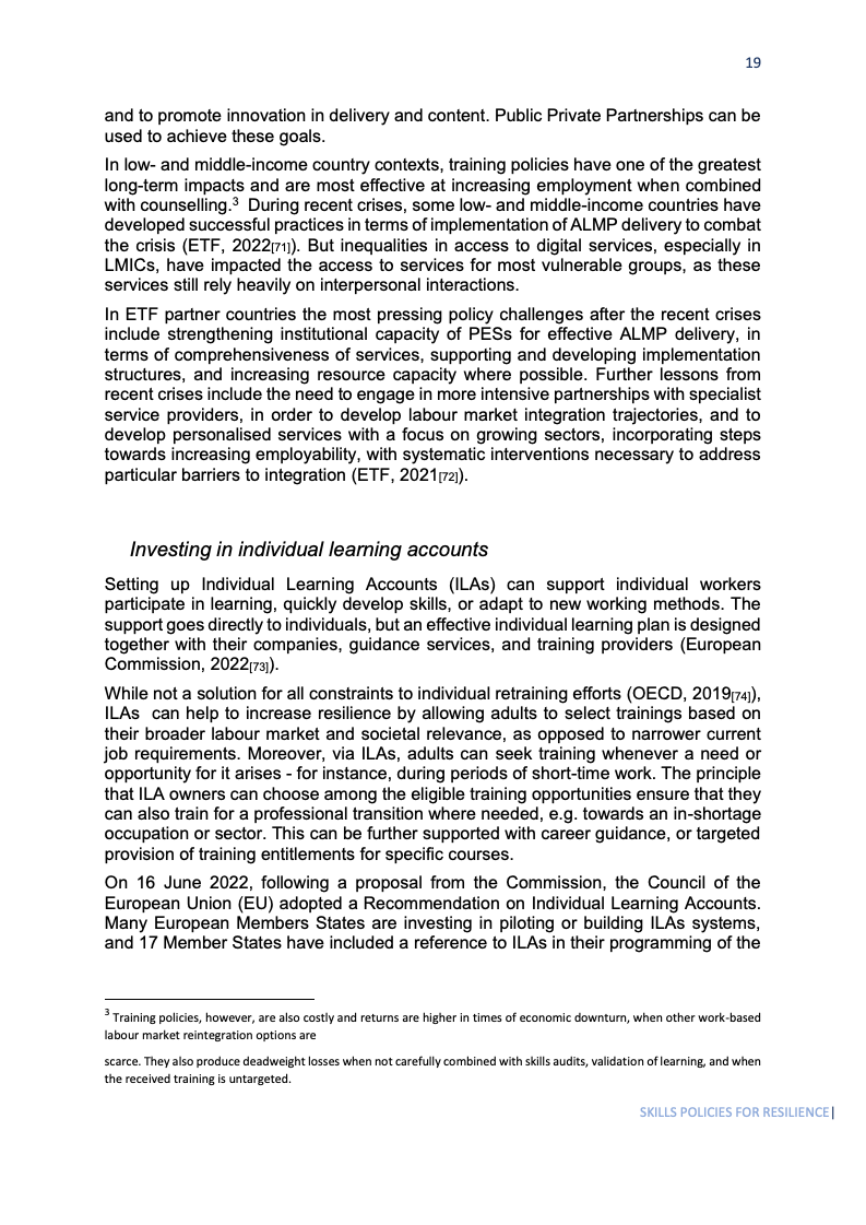 预期阶段技能情报系统重要,大数据分析职位空缺预测需求。活跃劳动力市场政策结合咨询最有效,低中收入国培训与辅导结合提升就业。个人学习账户如法国CPF,自2015年激活2000万账户,疫情受影响行业使用率最高。