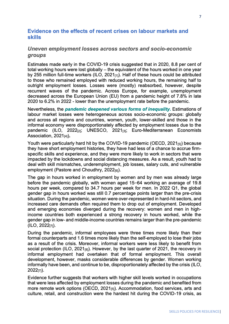 新冠疫情及其后续危机如乌克兰冲突引发的能源价格上涨,深刻影响全球经济和社会。2020年,全球工作小时损失达8.8%,相当于2.55亿全职工人一年工时。欧盟失业率从2020年底7.8%降至2022年6.2%,但恢复不均。女性、青年、低技能者和非正式就业者受冲击最大,女性每周工作小时仅19.8小时,男性为34.7小时,疫情期间差距扩大0.7个百分点。