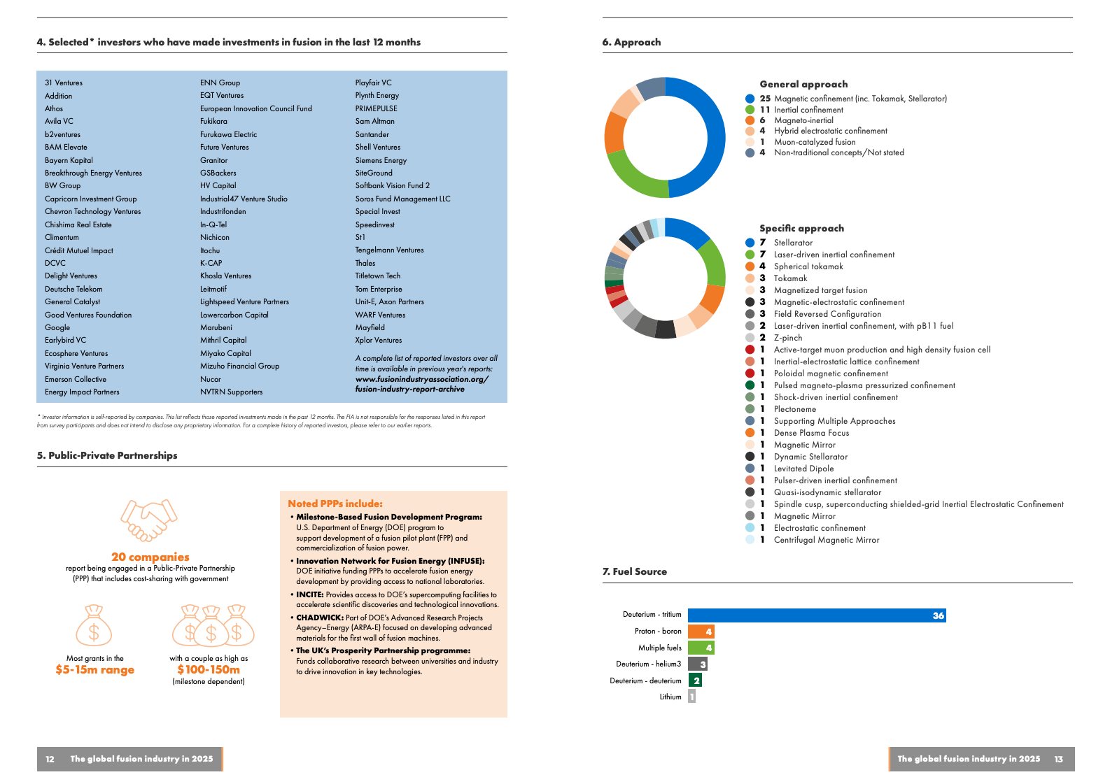 融资趋势持续向好。五年来,总融资从2021年的19亿美元飙升至如今的97亿美元,年均复合增长率超过50%。2025年显著投资包括太平洋融合的9亿美元、Helion的4.25亿美元和Marvel的9亿美元。公共-私人伙伴关系深化,美国能源部INFUSE计划、日本、德国和中国政府均加大支持。调查显示,31家公司参与成本分担的公私合作,大多为500万至1500万美元的资助项目。这不仅缓解资金压力,还加速技术验证。