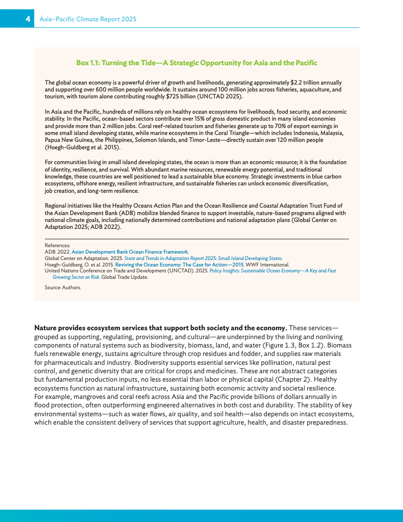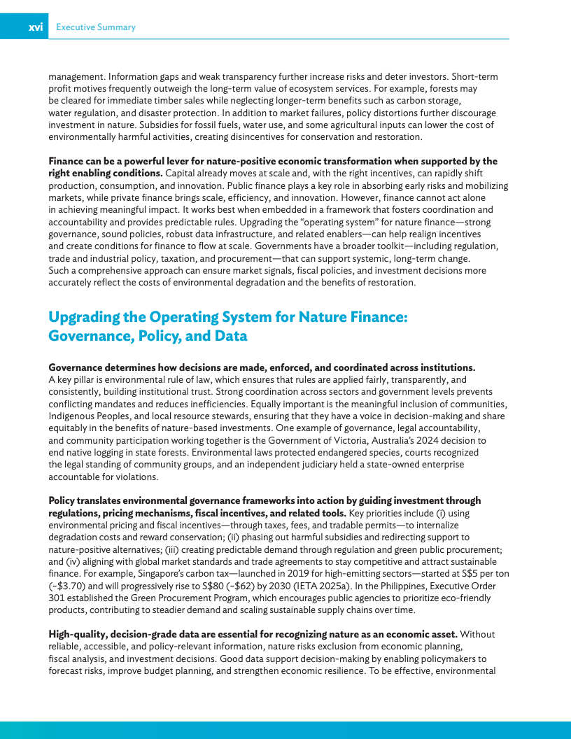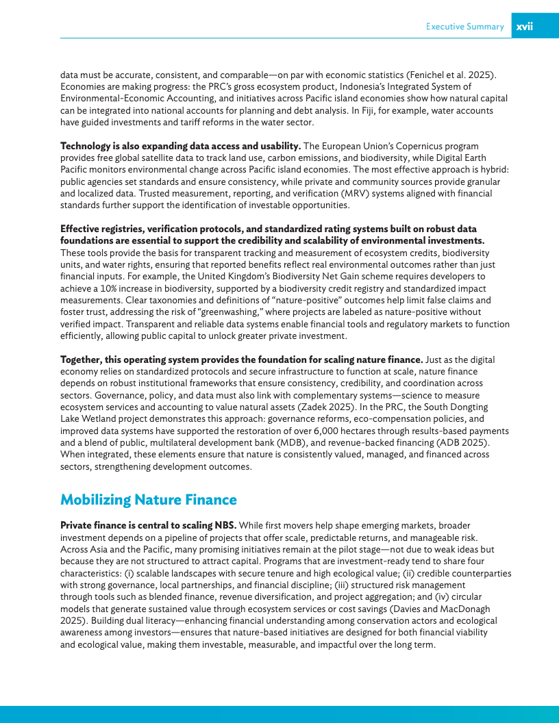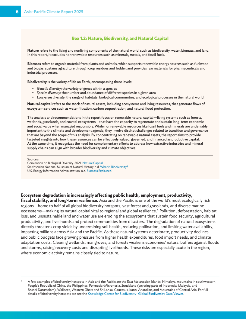 《2025年亚太地区气候报告:释放自然促发展》呼吁各国政府将自然保护纳入经济运行的核心环节,并敦促各国升级经济“运行体系”,即引导投资的治理、政策与数据基础,从而为私人资金流向养护、韧性和创新等领域创造有利条件。