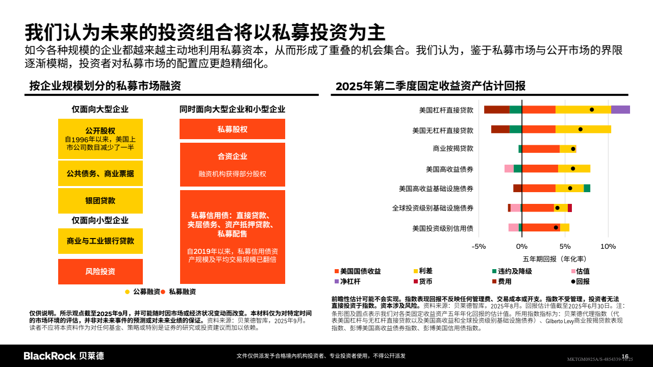 另类与私募正在重塑资本供给:企业IPO时的平均“成熟年限”延长,高收益债券平均交易规模扩大,私募信用自2019年以来资产规模与单笔规模翻倍,直接贷款、基础设施债与商业按揭在五年期年化回报估计中具备较优的利差与费用后净回报结构,对冲基金作为独立配置项以波动放大博取超额收益。外汇对冲成为潜在收益源,尤其在欧元区债券回美元的对冲利差环境下,组合层面的收益与风险再平衡更依赖跨资产与跨币种的主动管理。