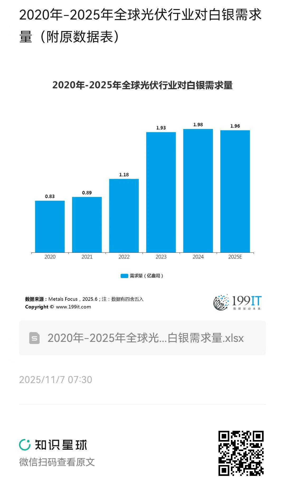 2020年-2025年全球光伏行业对白银需求量(附原数据表) ​​​