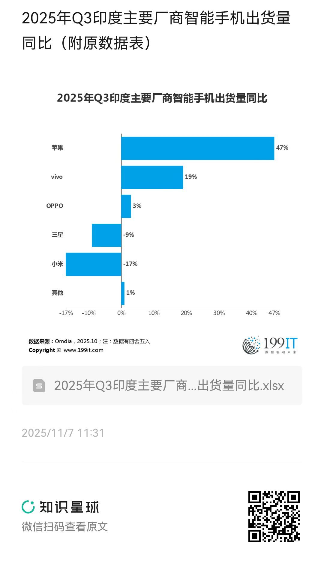 - 2025年Q3印度主要厂商智能手机出货量(附原数据表)