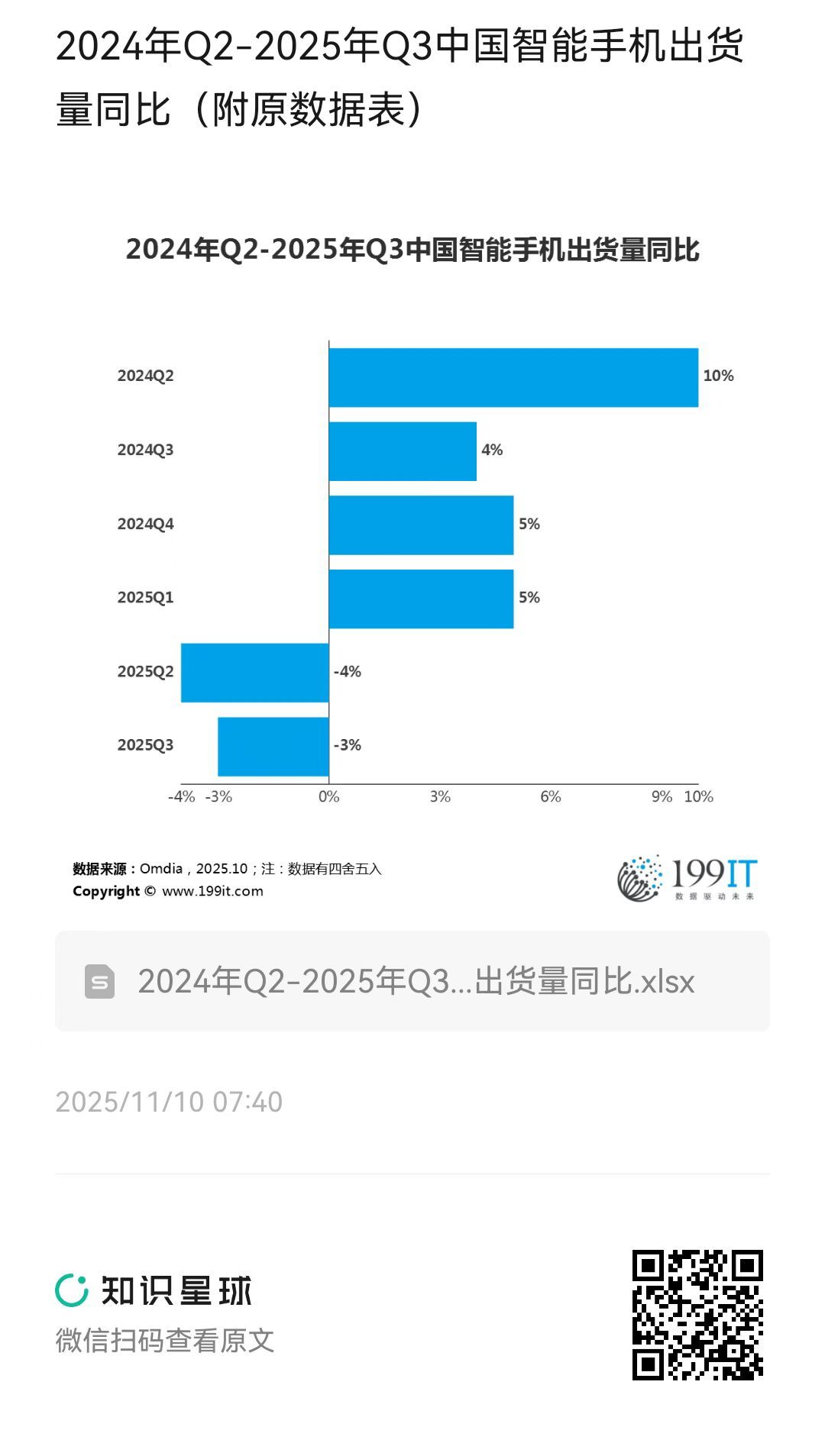 - 2022年Q2-2023年Q2中国智能手机出货量及同比(附原数据表)