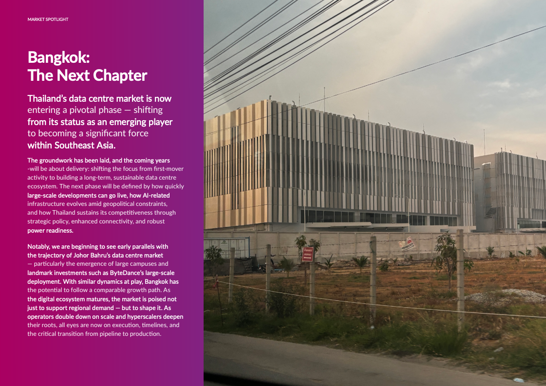 趋势洞察:随着一批大型项目陆续投产,曼谷数据中心市场将进入“交付兑现”阶段,重点转向产能释放及AI基础设施演进。对标柔佛新山项目成长路径,曼谷有望凭借规模园区、政策支持和地缘中立优势,从区域配角晋升为东南亚数字基础设施领军者。