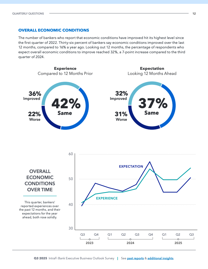 信贷需求修复:46%报告走强,47%预期将升;宏观感受改善,36%称过去一年向好,32%看好未来一年。