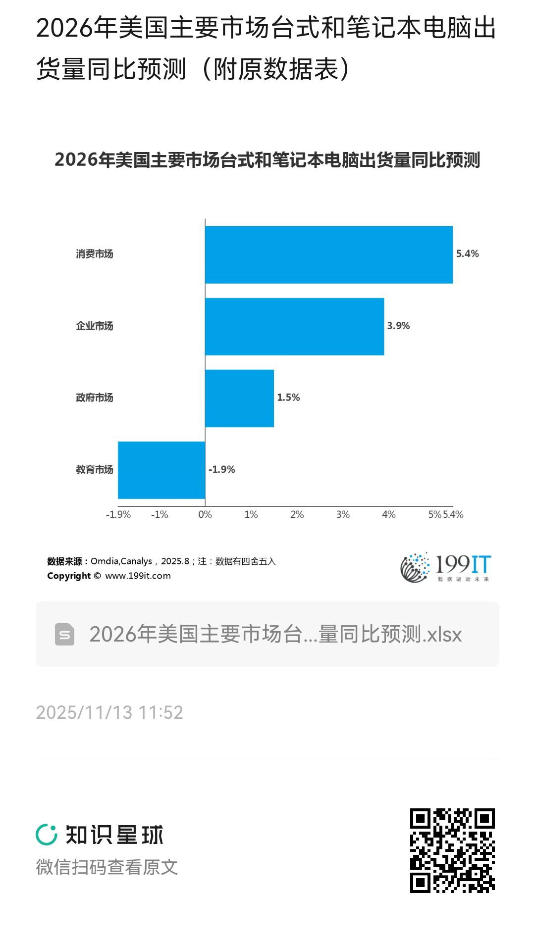 - 2026年美国主要部门台式和笔记本电脑出货量及同比预测(附原数据表)