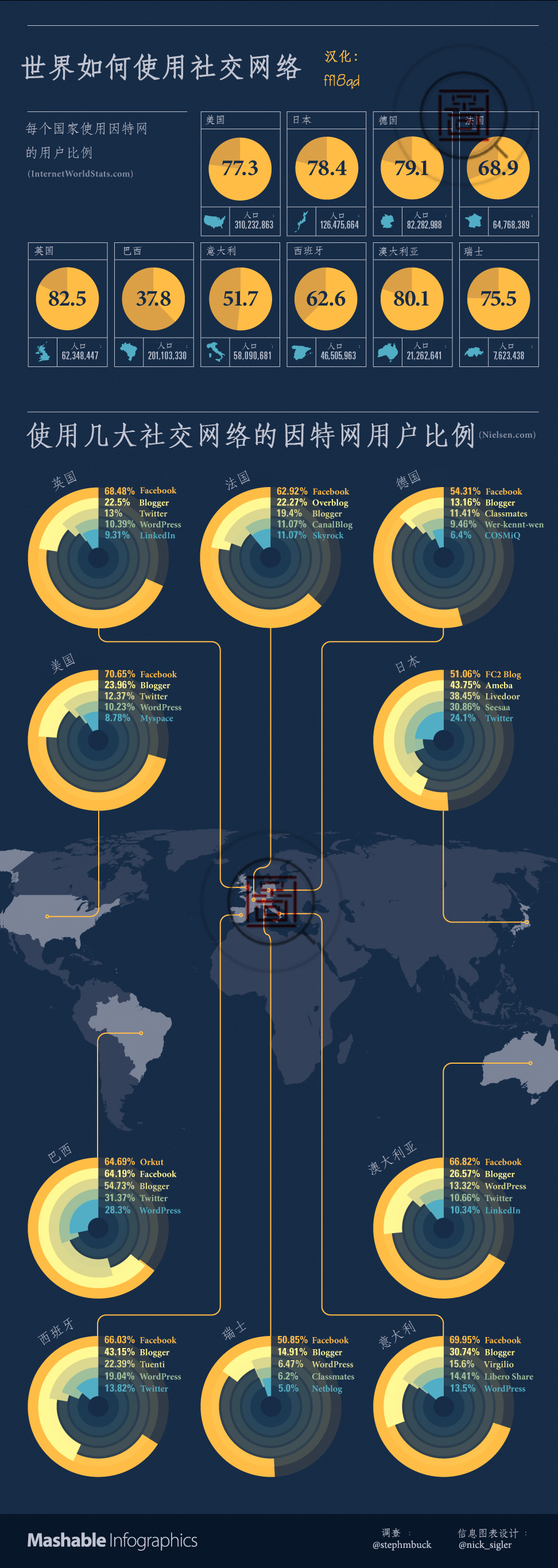 虽然我们看起来都是生活在脸书这个主流社交社会中,不过要知道世界上很多人在使用不同的社交网络这一点也很重要。我们研究了十个国家的社交媒体的发展现状——他们是如何与社交网络,博客和网络文化互动的。