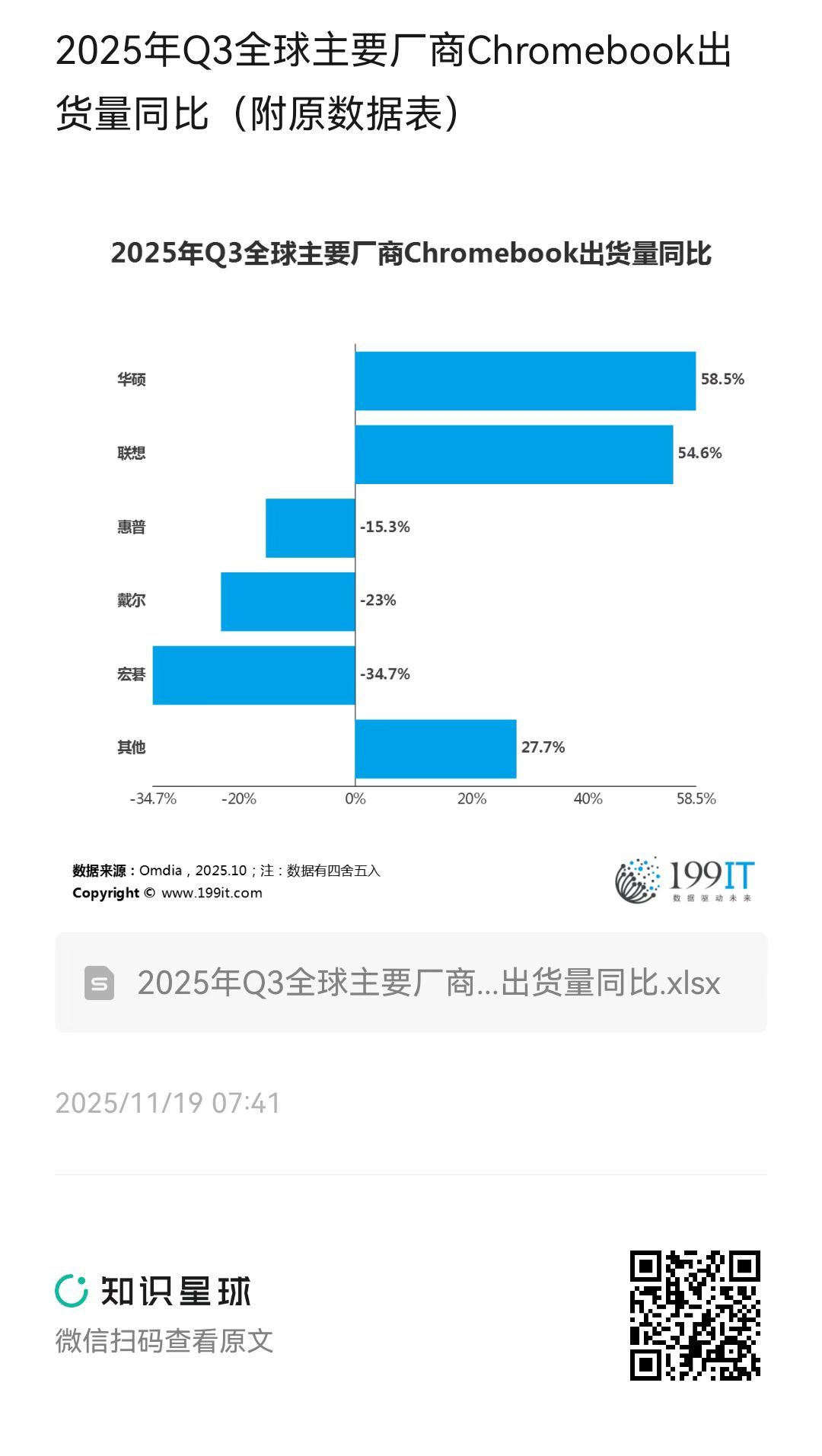 - 2025上半年全球主要厂商Chromebook出货量同比(附原数据表)