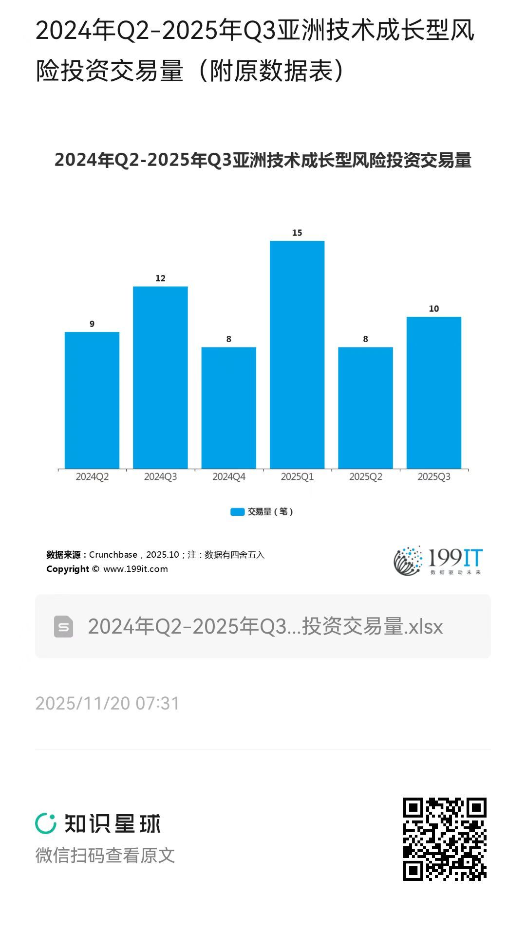 - 2024年Q2-2025年Q3亚洲技术成长型风险投资交易额(附原数据表)