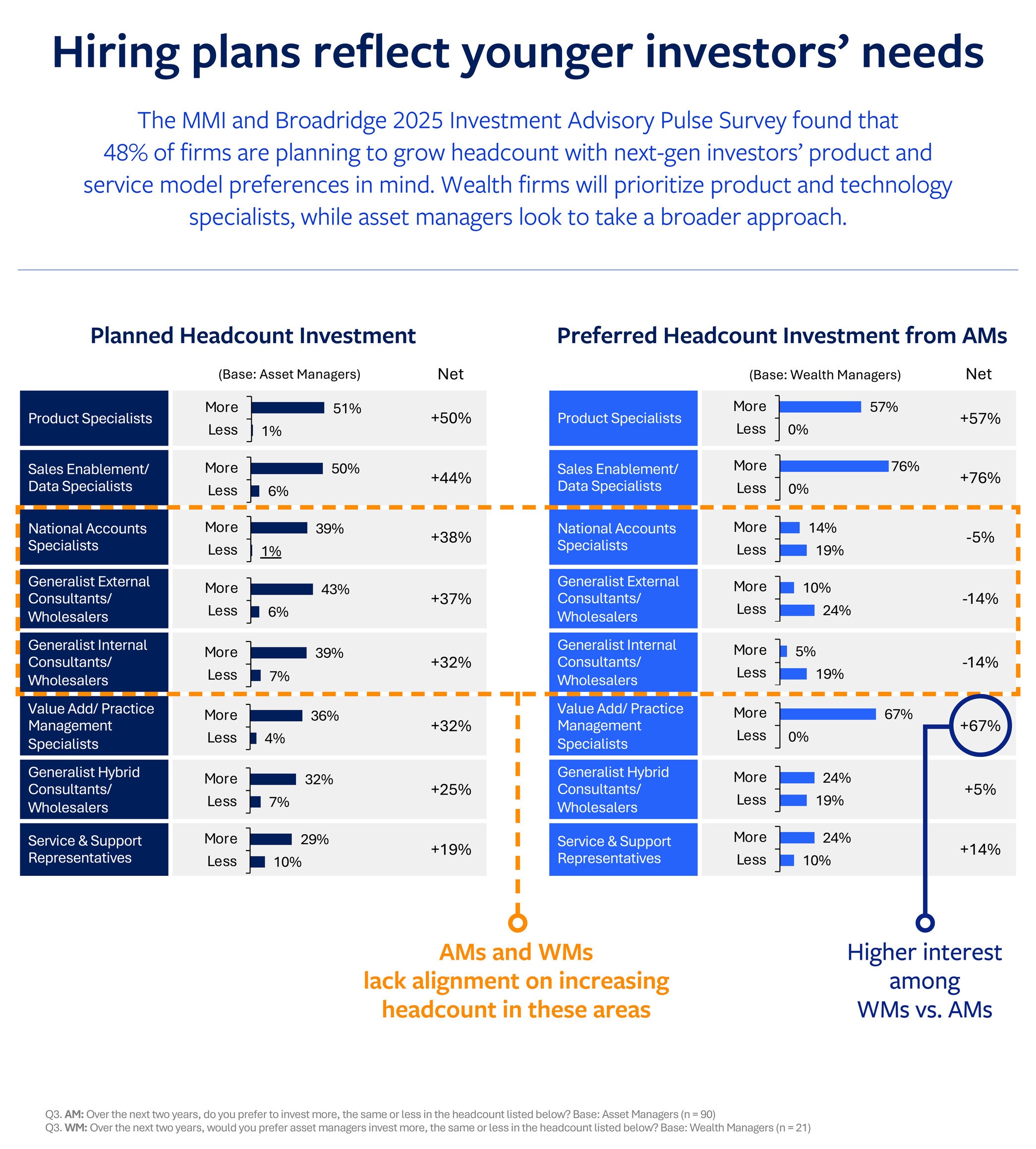 Planned headcount investments according to the MMI and Broadridge 2025 Investment Advisory Pulse Survey