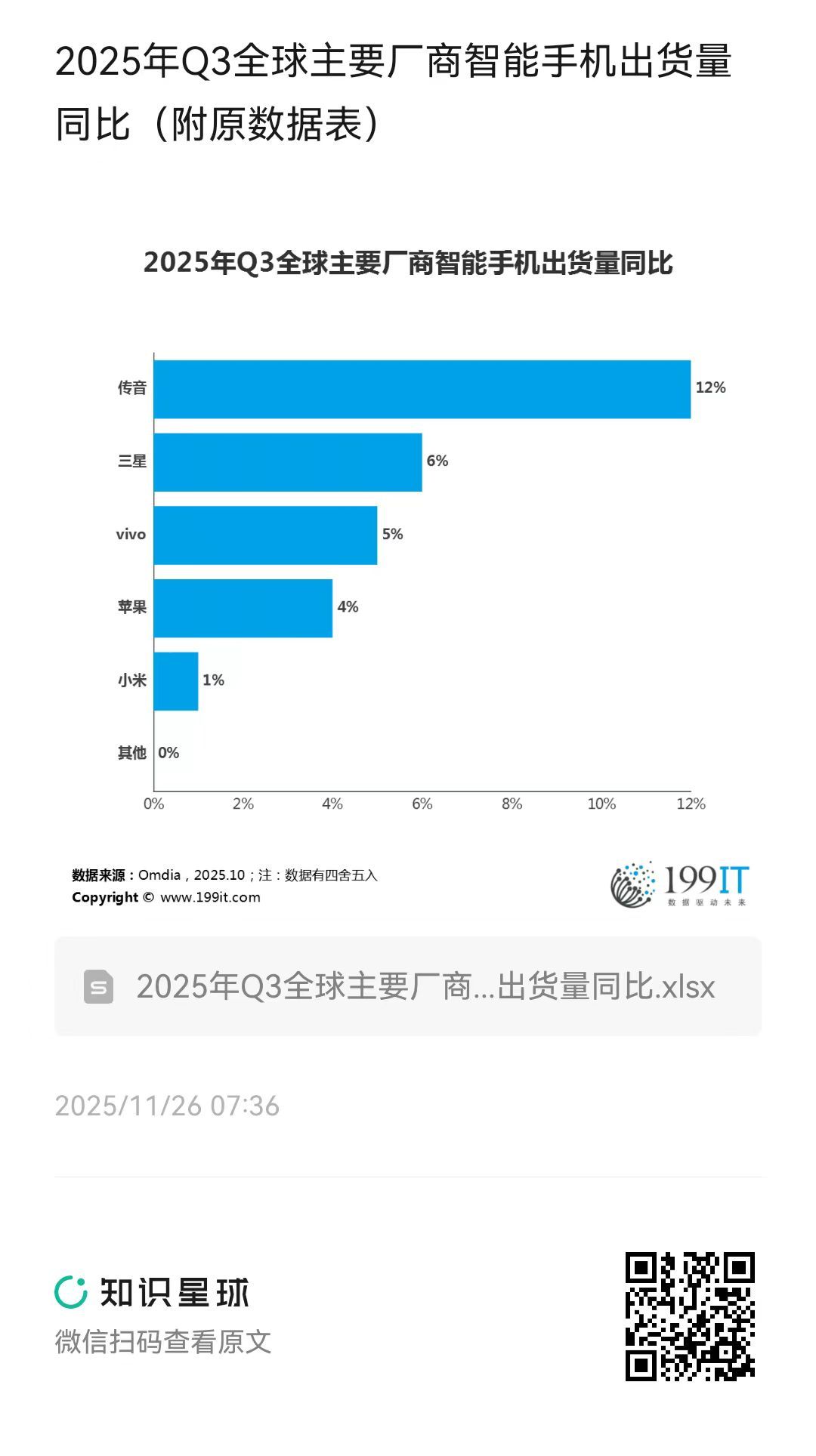 - 2025年Q3全球主要厂商智能手机出货量(附原数据表)