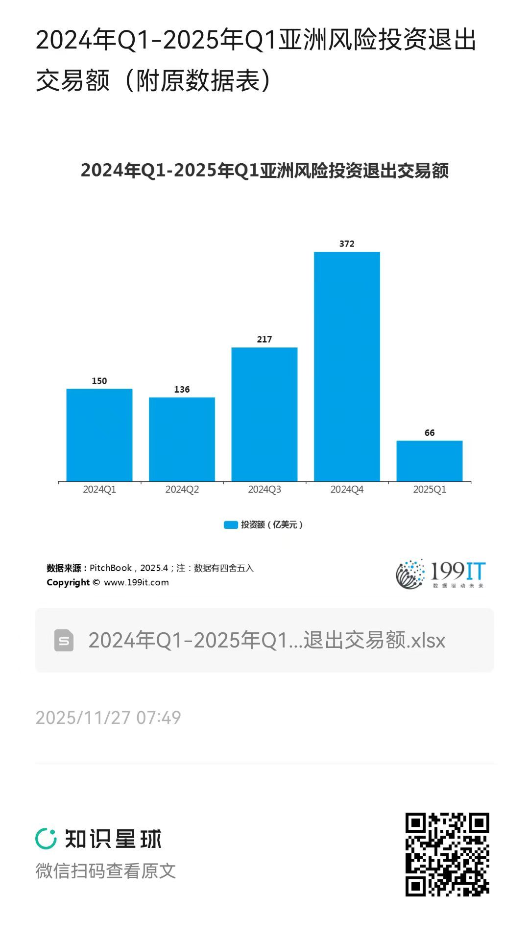 - 2021年Q1-2023年Q1亚洲风险投资退出交易额(附原数据表)