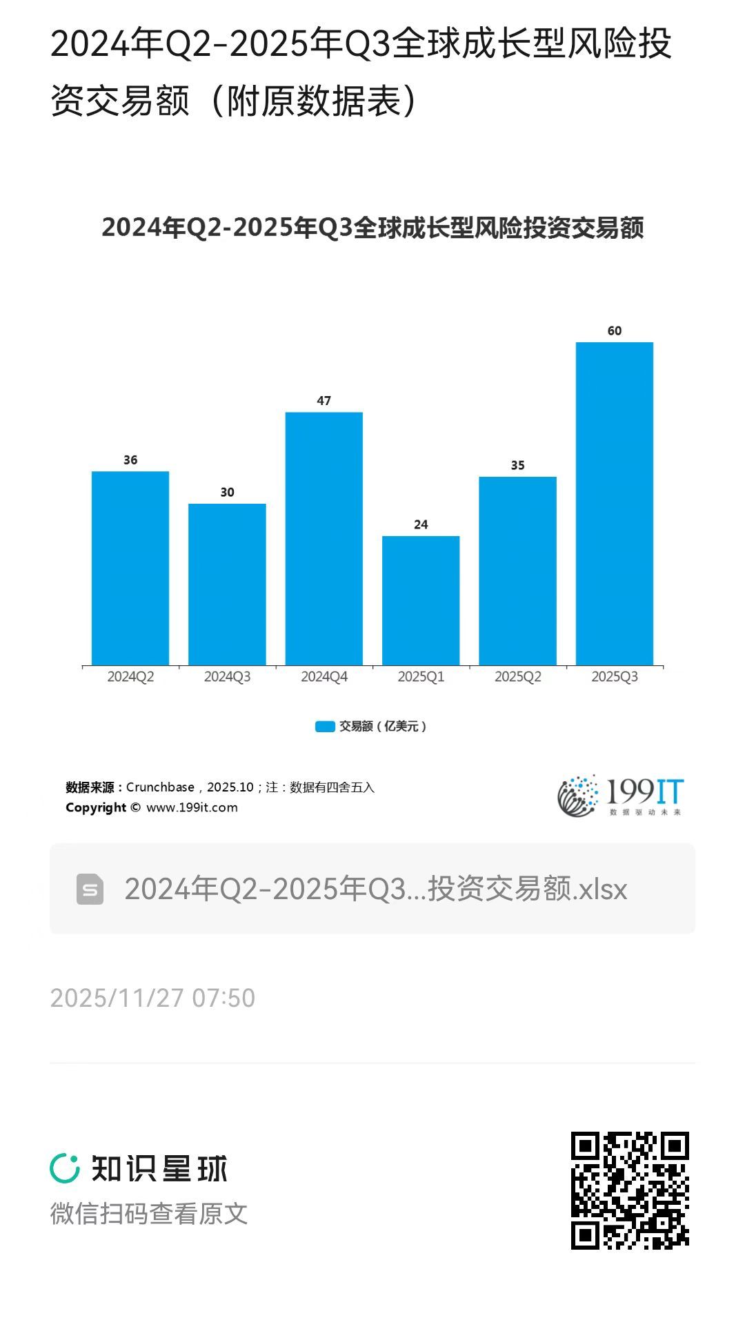 - 2022年Q2-2024年Q1全球成长型风险投资交易额(附原数据表)