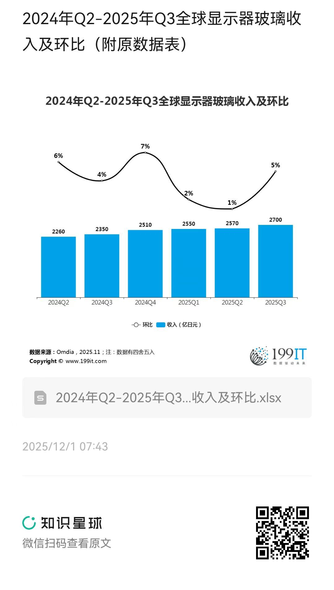 - 2025年Q4-2027年Q2全球显示器玻璃收入及环比预测(附原数据表)