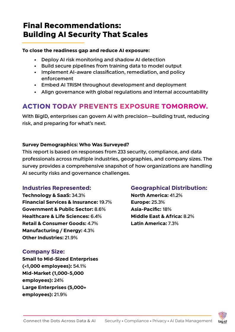 行业差异同样显著。金融行业中62%缺乏AI专属数据保护;医疗机构有52%难以跟上合规要求;零售业48%无法监测AI对客户PII的使用;而科技行业虽创新领先,却有42%没有明确的AI风险策略。这进一步说明,行业越依赖数据,AI风险越容易在体系内部放大。