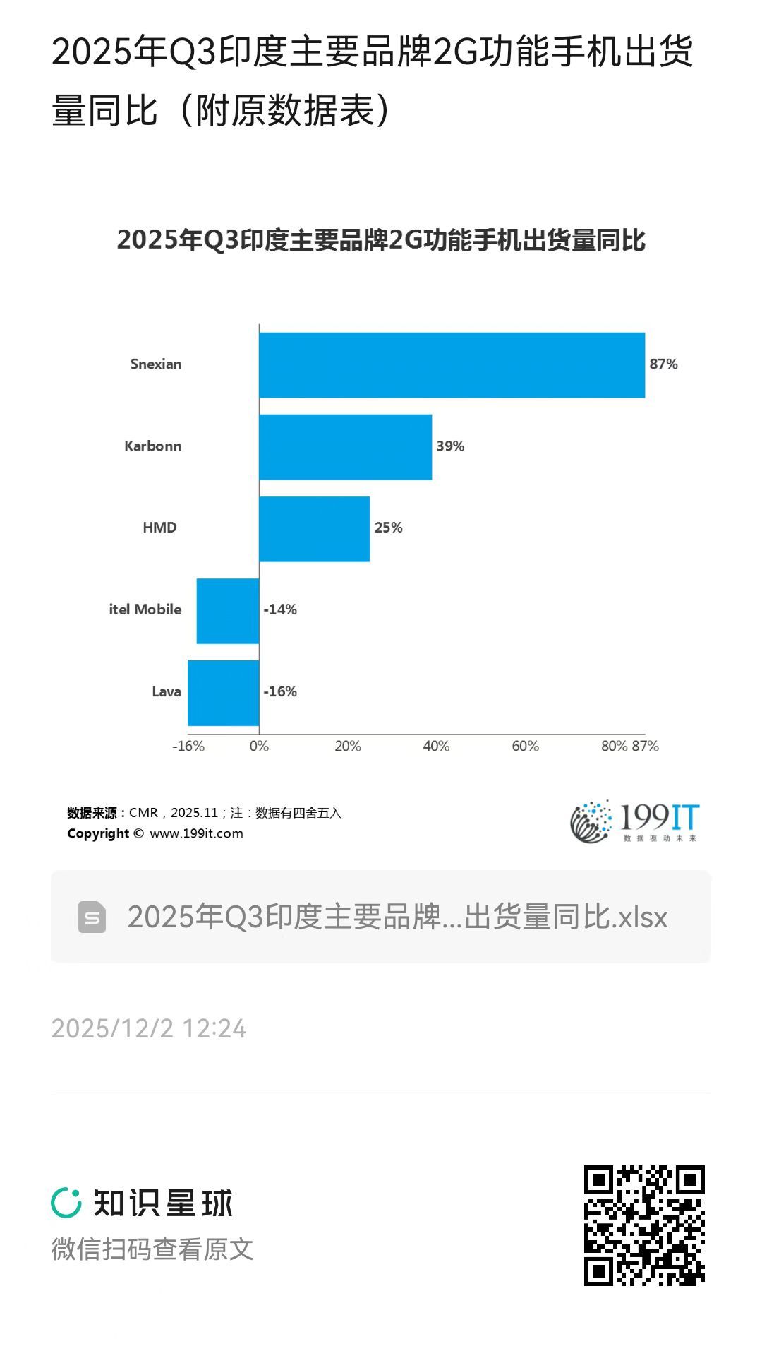 - 2025年Q3印度主要品牌2G功能手机出货量市场份额(附原数据表)