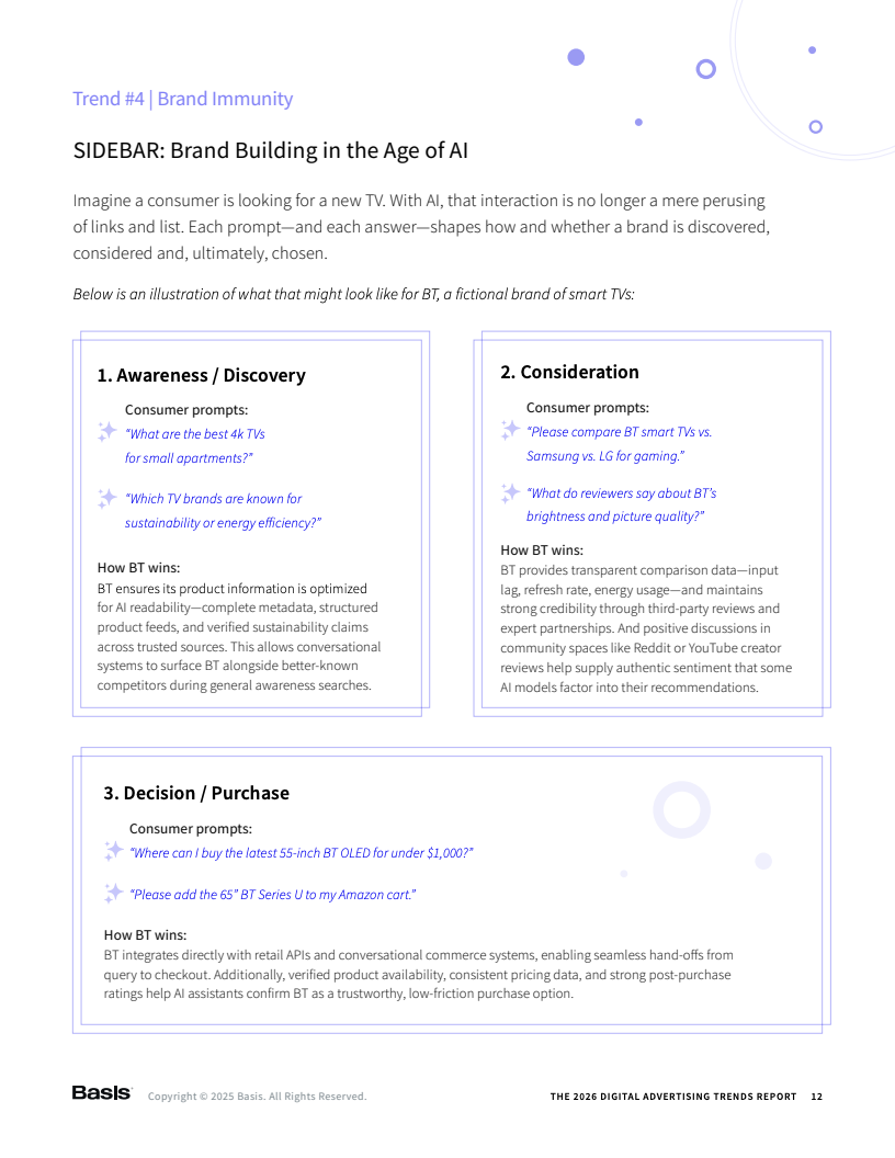 在今天的社会环境中,品牌的成功不再仅仅依赖于质量和价值,信任已经成为决定品牌忠诚度的关键因素。报告强调,品牌必须通过真实、透明的沟通来赢得消费者的信任,而这种信任将在未来的广告环境中成为品牌与消费者之间最重要的纽带。随着AI技术的发展,品牌的曝光和知名度不仅依赖于传统的营销手段,还必须在AI助手和搜索引擎的推荐机制中保持强大的竞争力。