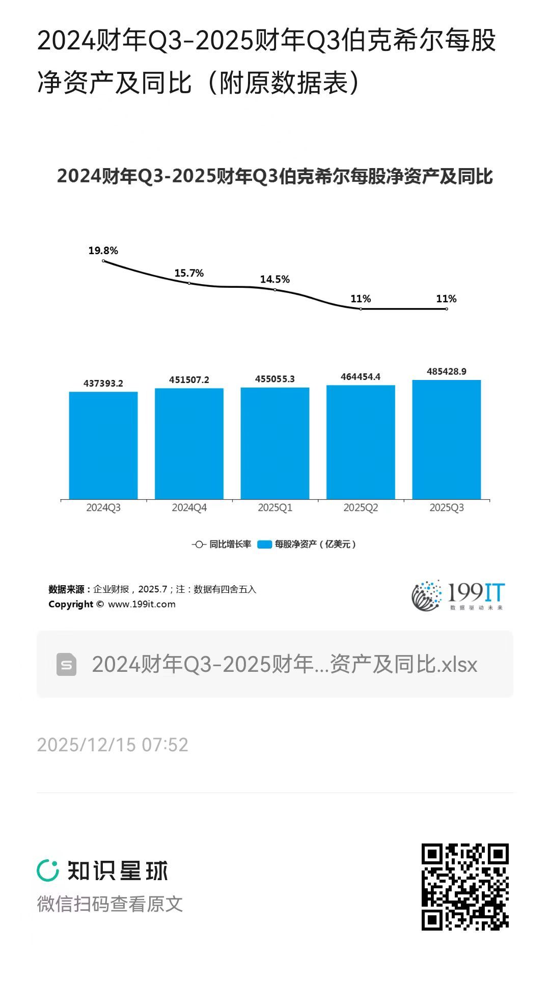 - 2024财年Q3-2025财年Q3伯克希尔每股现金流及同比(附原数据表)
