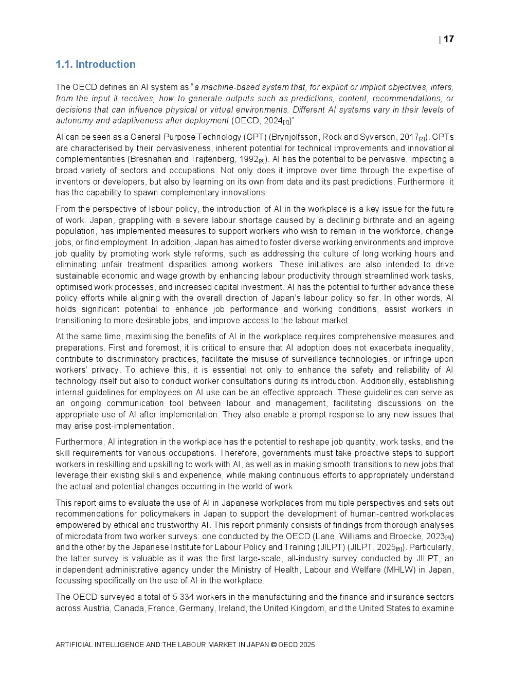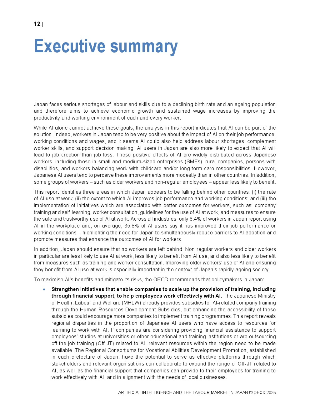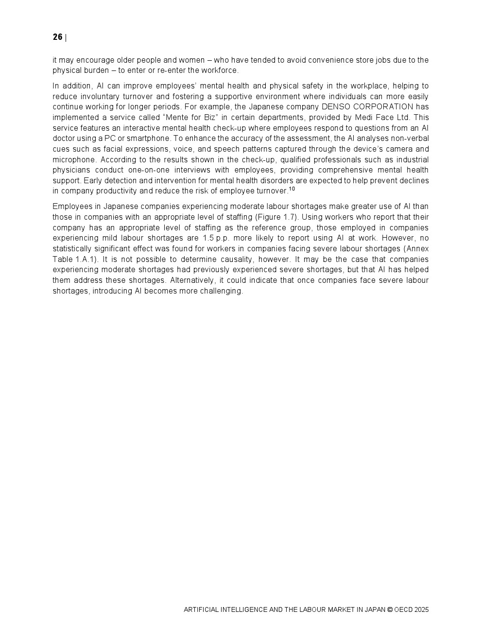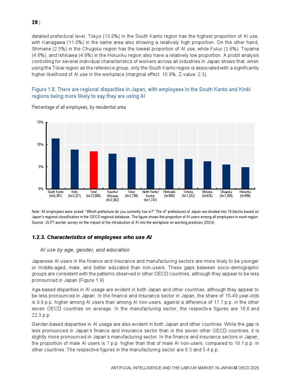 日本正同时面对人口老龄化与劳动力持续收缩的双重约束。OECD数据显示,日本整体AI在职场中的使用率仅为8.4%,显著低于其他经合组织国家,在制造业和金融保险业中差距尤为明显。这一低渗透率意味着日本尚未充分释放AI提升劳动生产率与改善工作环境的潜力,也使其在国际比较中处于明显滞后位置。