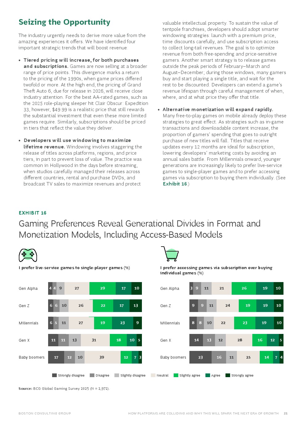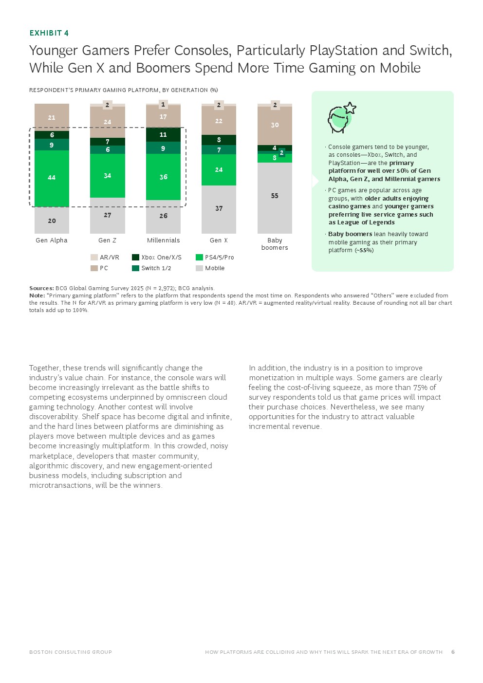 这些趋势共同作用,将显著改变行业的价值链。例如,随着竞争转向由全平台云游戏技术支持的生态系统竞争,“主机大战”将变得越来越无关紧要。另一场竞争将围绕“可发现性”展开。货架空间已变得数字化且无限,随着玩家在多设备间切换、游戏日益跨平台,平台间的硬性界限正在模糊。在这个拥挤而嘈杂的市场中,精通社区运营、算法发现以及订阅和微交易等新商业模式的开发者将成为赢家。
