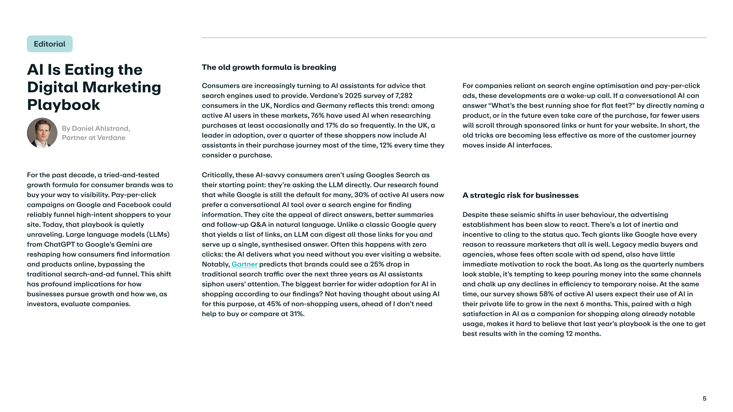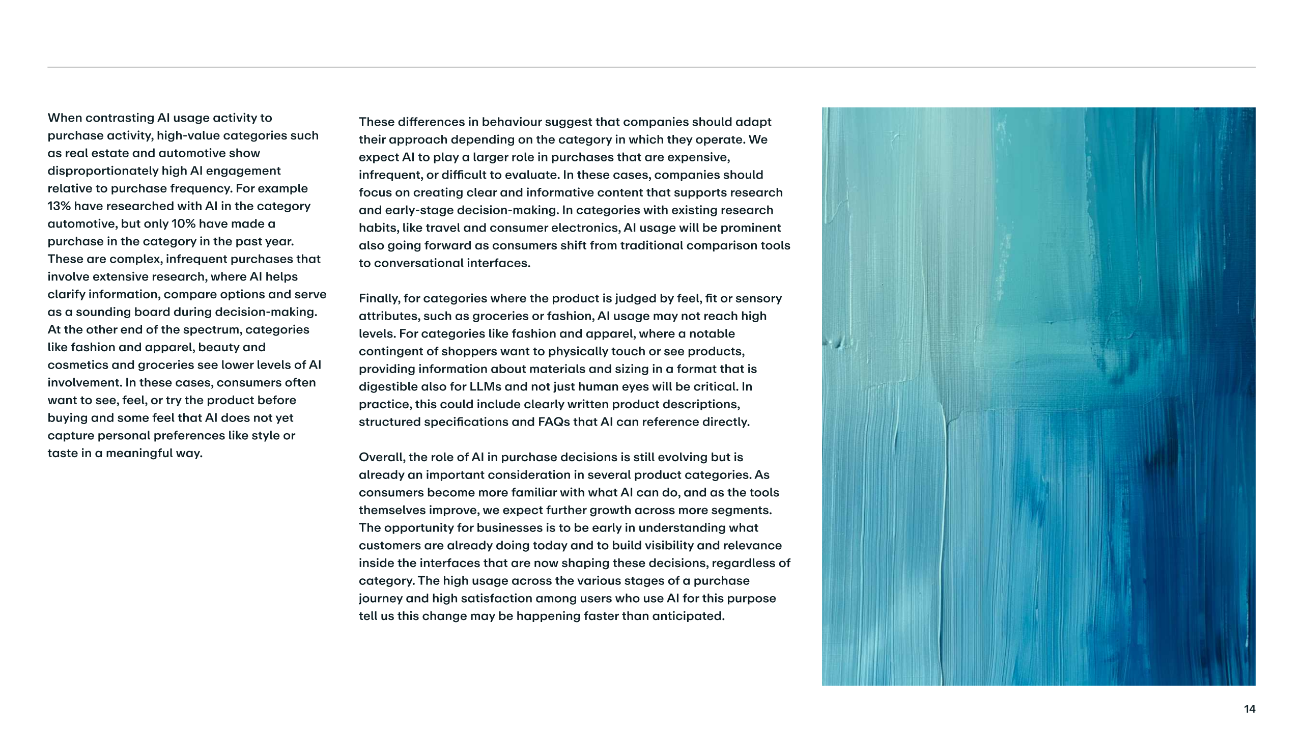 从趋势判断看,欧洲消费者AI采用仍处于加速阶段。95%的活跃用户预计其私人使用频率将在未来六个月保持或继续提升,71%的用户认为AI已对其生活产生积极影响。随着工具准确性提升、实时信息接入与使用场景扩展,私人场景将继续领先于工作场景,进而反向推动企业与商业模式调整。对品牌而言,未来竞争优势将不再来自购买流量,而在于真实的用户口碑、内容可信度与品牌被AI“理解和推荐”的能力,这或将重塑整个消费者决策与营销生态。