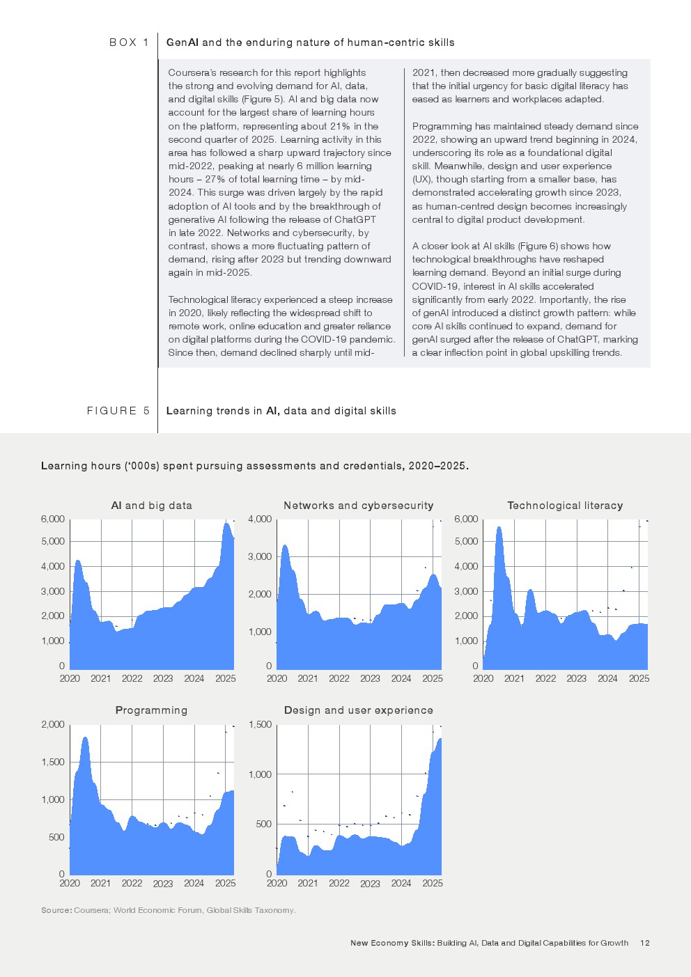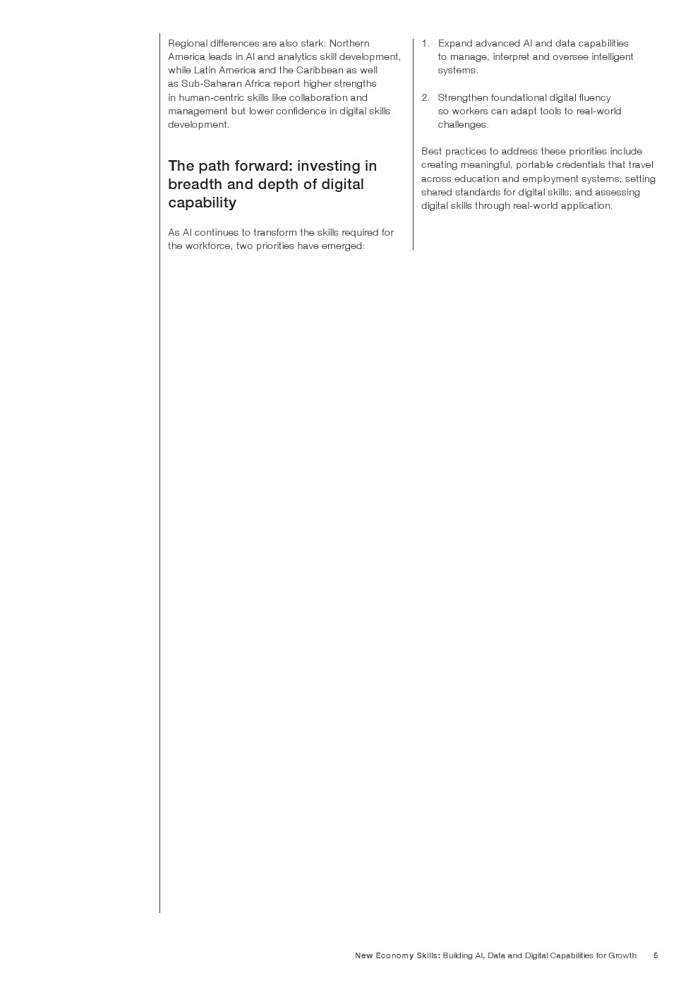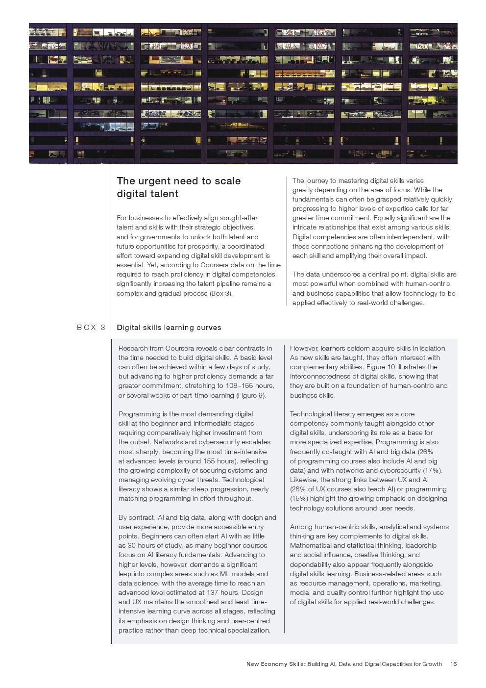 企业需求结构正在明显变化。分析思维、创造力、韧性、学习能力和自我认知被列为当前与2030年前最关键的能力。相较之下,传统基础能力如阅读、写作和数学的重要性增长趋缓,部分原因在于技术工具已承担大量重复性认知任务。报告数据表明,人类能力正成为驱动创新和组织生产率的核心要素。