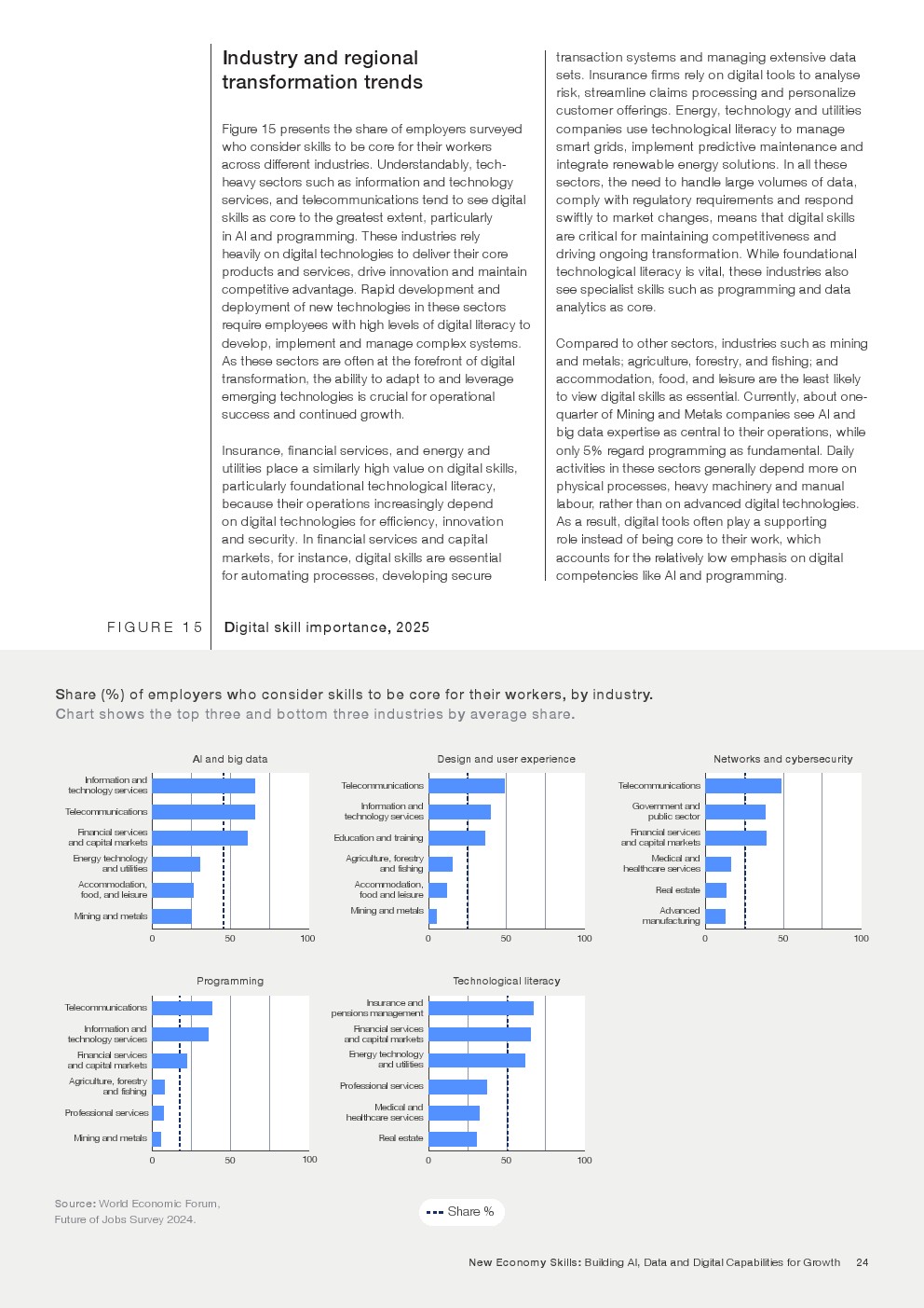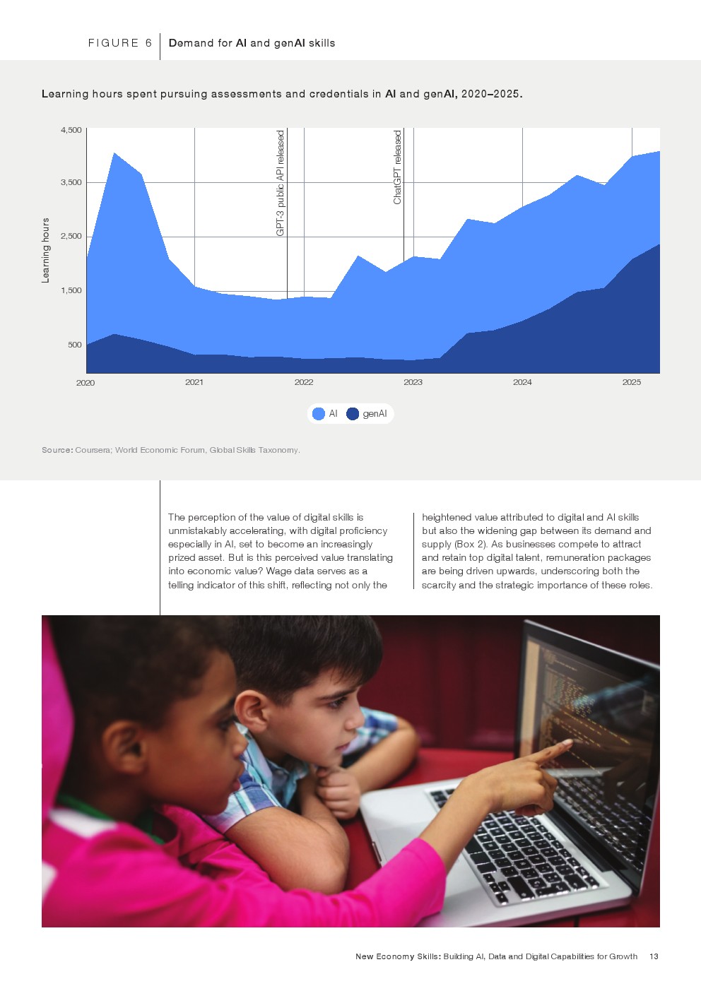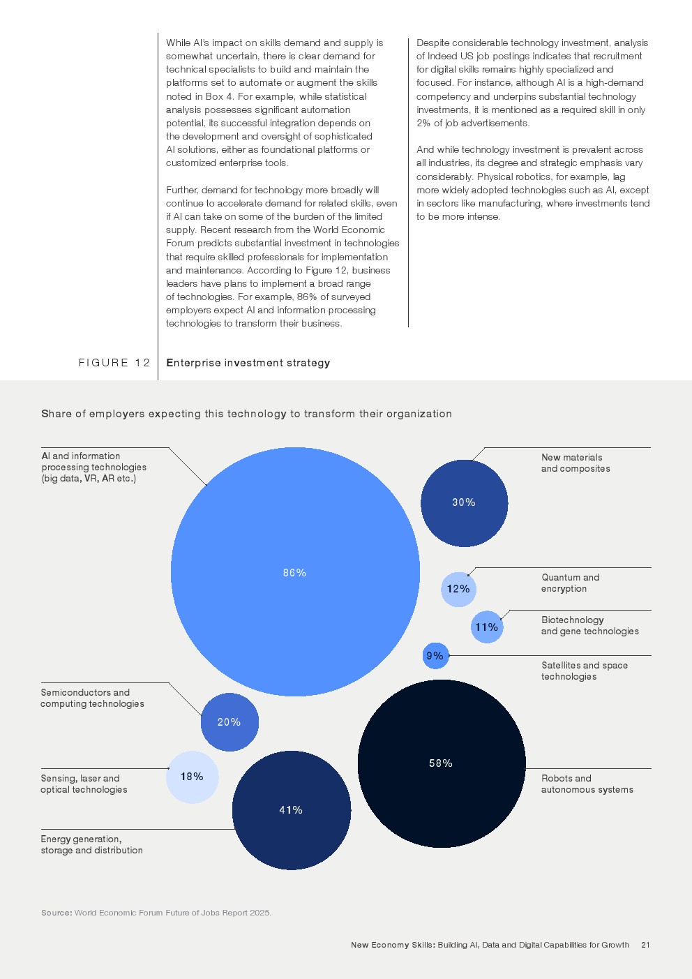企业需求结构正在明显变化。分析思维、创造力、韧性、学习能力和自我认知被列为当前与2030年前最关键的能力。相较之下,传统基础能力如阅读、写作和数学的重要性增长趋缓,部分原因在于技术工具已承担大量重复性认知任务。报告数据表明,人类能力正成为驱动创新和组织生产率的核心要素。