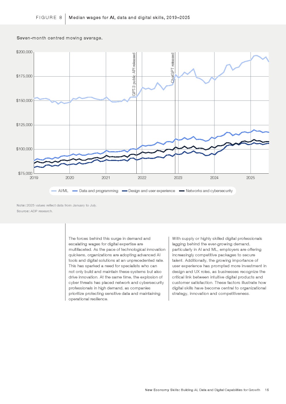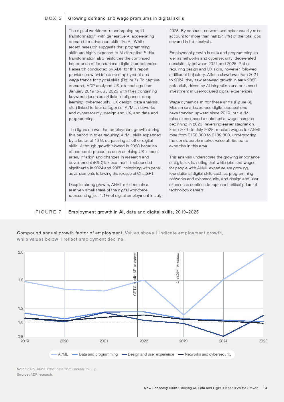 值得注意的是,人类技能虽然被称为“持久技能”,但其实十分脆弱。疫情期间,教学能力和韧性等依赖人际互动的能力使用频率下降超过5%,直到2025年仍未恢复到2019年的水平。研究还显示,约25%的学习者可在数周内提升相关能力,但多数人需要数月持续练习才能形成稳定技能。