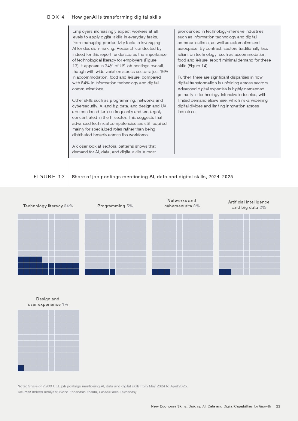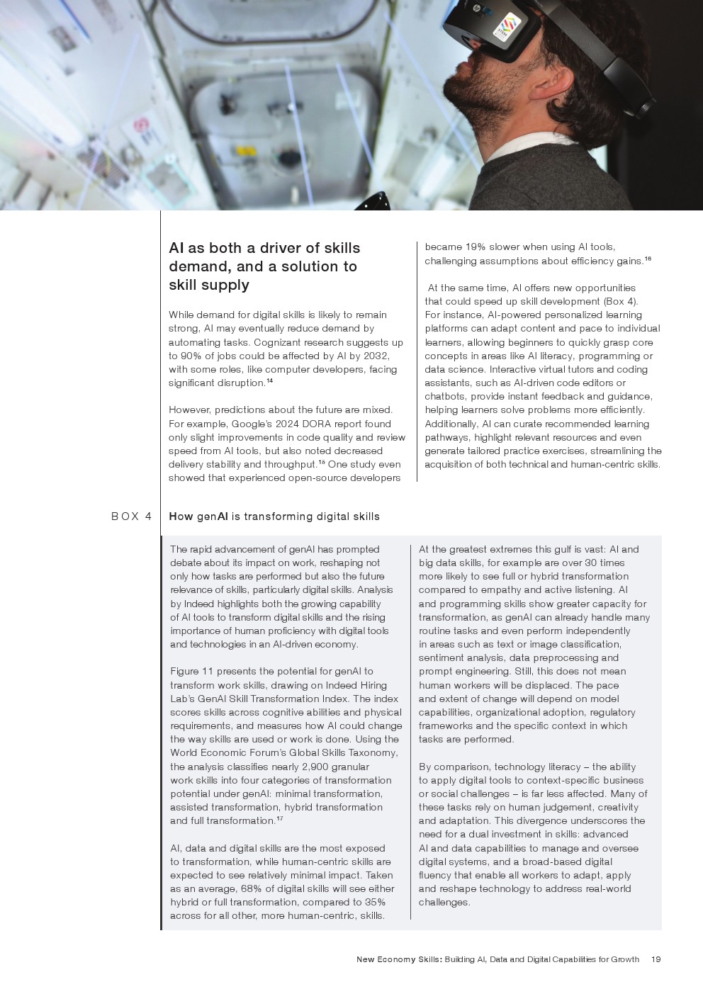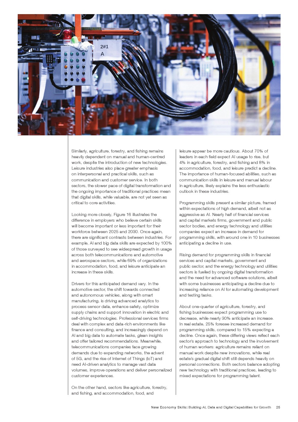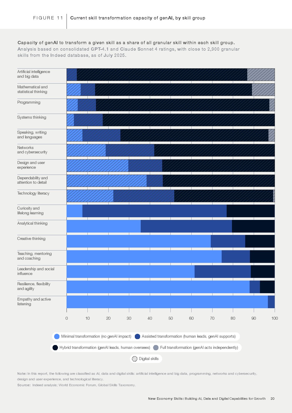 与此同时,这些能力恰恰也是最难被AI替代的部分。报告分析显示,与同理心、创造力和领导力相关的任务,仅约13%具有被人工智能深度改造的潜力,因为这些能力依赖情境判断、经验与社会互动,这是算法难以完全复制的领域。