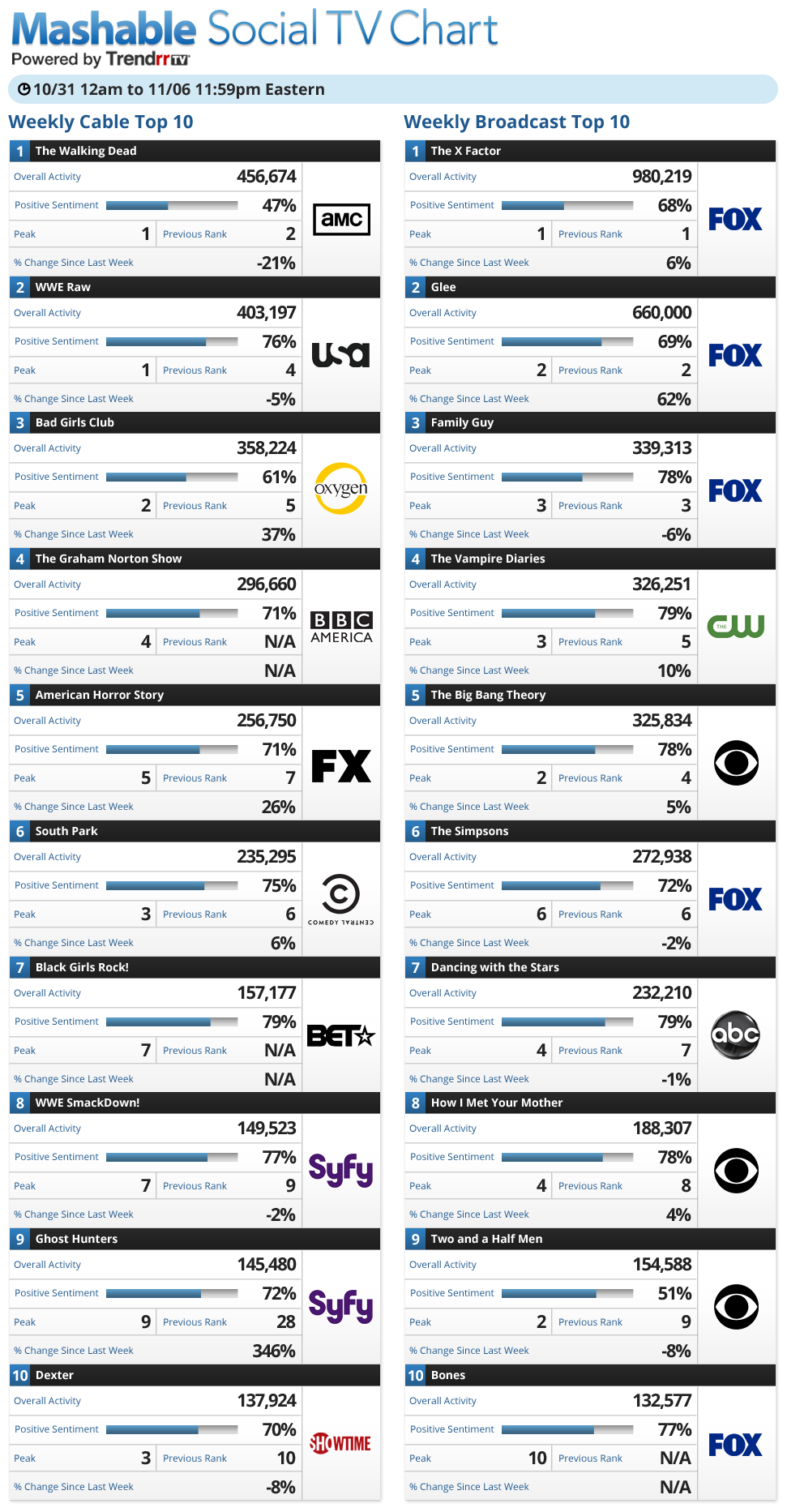 Trendrr.TV:最近哪些美剧最流行 最近国内喜欢美剧的观众肯定很有福,美剧季回来了。那么这些美剧在国外的表现又怎样,我们一起来看下面的数据 更多阅读:Beyond:社交分享的未来–数据信息图Mr Youth:社交驱动购买 品牌却失去近半商机–数据信息图Sociagility:全球50大社交网络品牌价值排名Millennial Branding:Facebook Y一代的职业状况–数据信息图Facebok用户数据和品牌排行–数据信息视图mdgadvertising:Pinterest营销指南Statista:2011年1月Pinterest人均访问时长eMarketer:2012年全球社交网络的用户将达到15亿人TV Guide:社会化媒体有助于电视剧传播和塑造用户忠诚分析:全面诊断FACEBOOKeMarketer:Facebook的美国用户增长变缓,但是Twitter增长有望到达两位数Lab42:社交网络用户人口特征和心理特征分析Website-Monitoring:Google+事实和数据–数据信息视图Zynga 2011年Q4财务数据[信息视图]Localeze:社交网络对本地商户搜索的影响日益增强