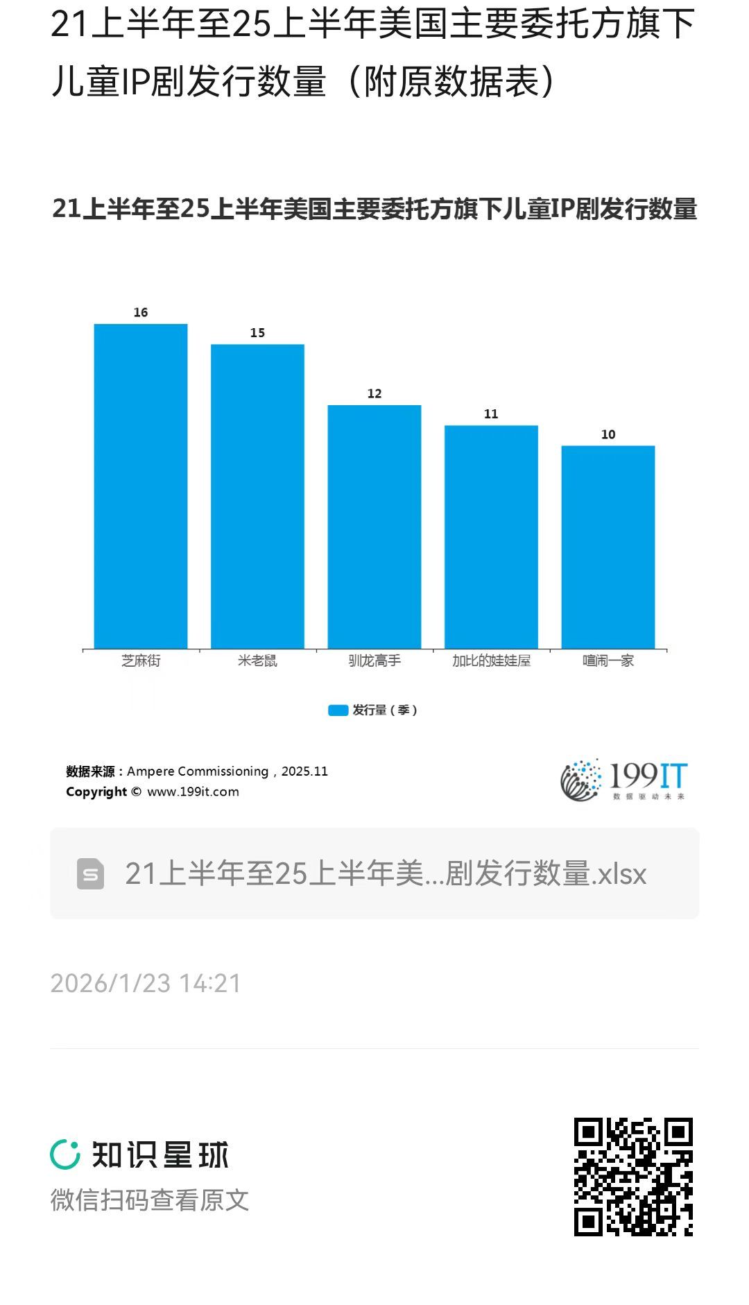 21上半年至25上半年美国主要委托方旗下儿童IP剧发行数量(附原数据表) ​​​