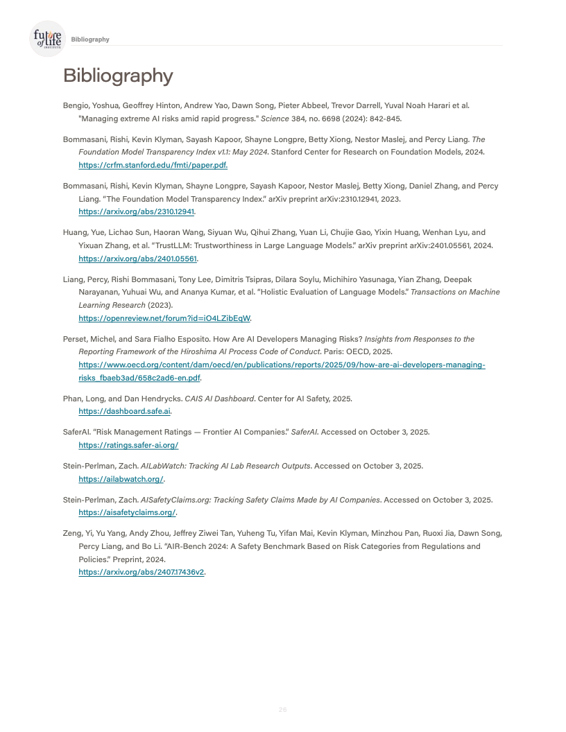 综合来看,《AI Safety Index 2025》描绘的是一个安全投入逐步增加、但仍明显跟不上能力扩张的前沿AI产业。趋势层面,随着欧盟AI行为准则、G7广岛进程等国际规范逐步具体化,安全治理的最低标准正在上移。未来的分化关键不再是是否“表态重视安全”,而在于企业能否建立可验证、可审计、具备真实约束力的风险管理体系,否则能力与安全之间的裂缝仍将继续扩大。