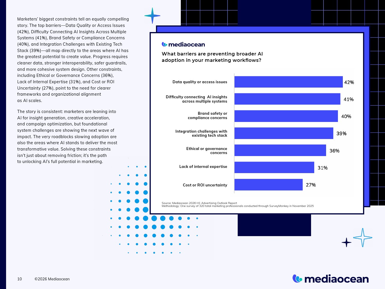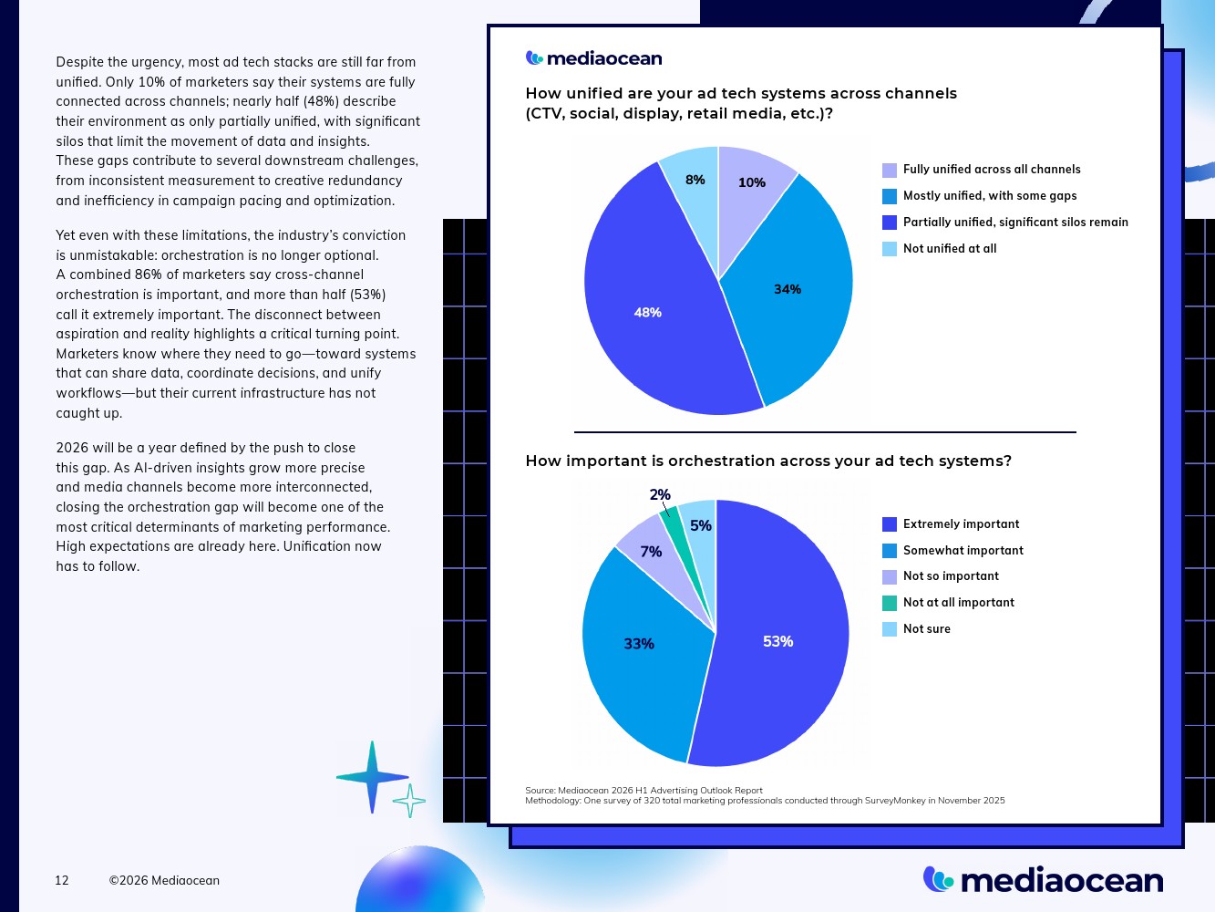 营销人员正带着明确的指令进入2026年:让各渠道更好地协同工作。对跨渠道协同的期望持续升高,然而支持其所需的基础设施仍处于高度碎片化状态。行业最关注的问题——平台与发布商之间的碎片化(56%)——正反映出,在持续扩张的全渠道环境中管理受众、绩效与创意已变得何等困难。