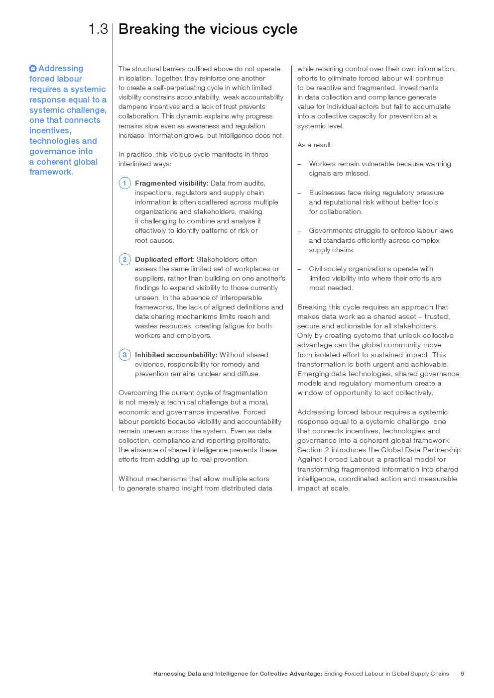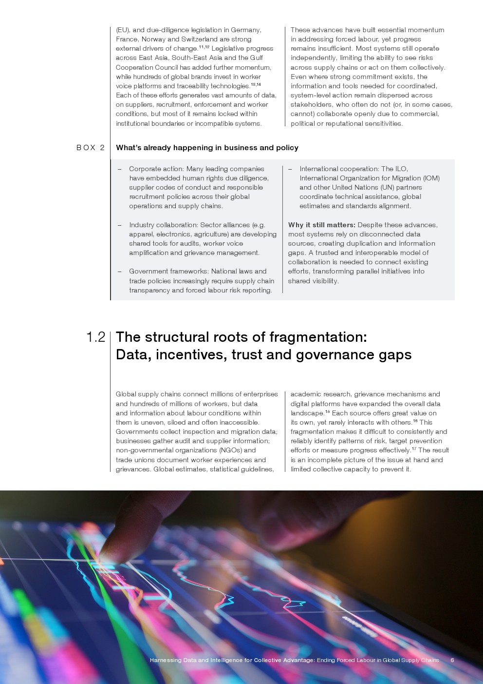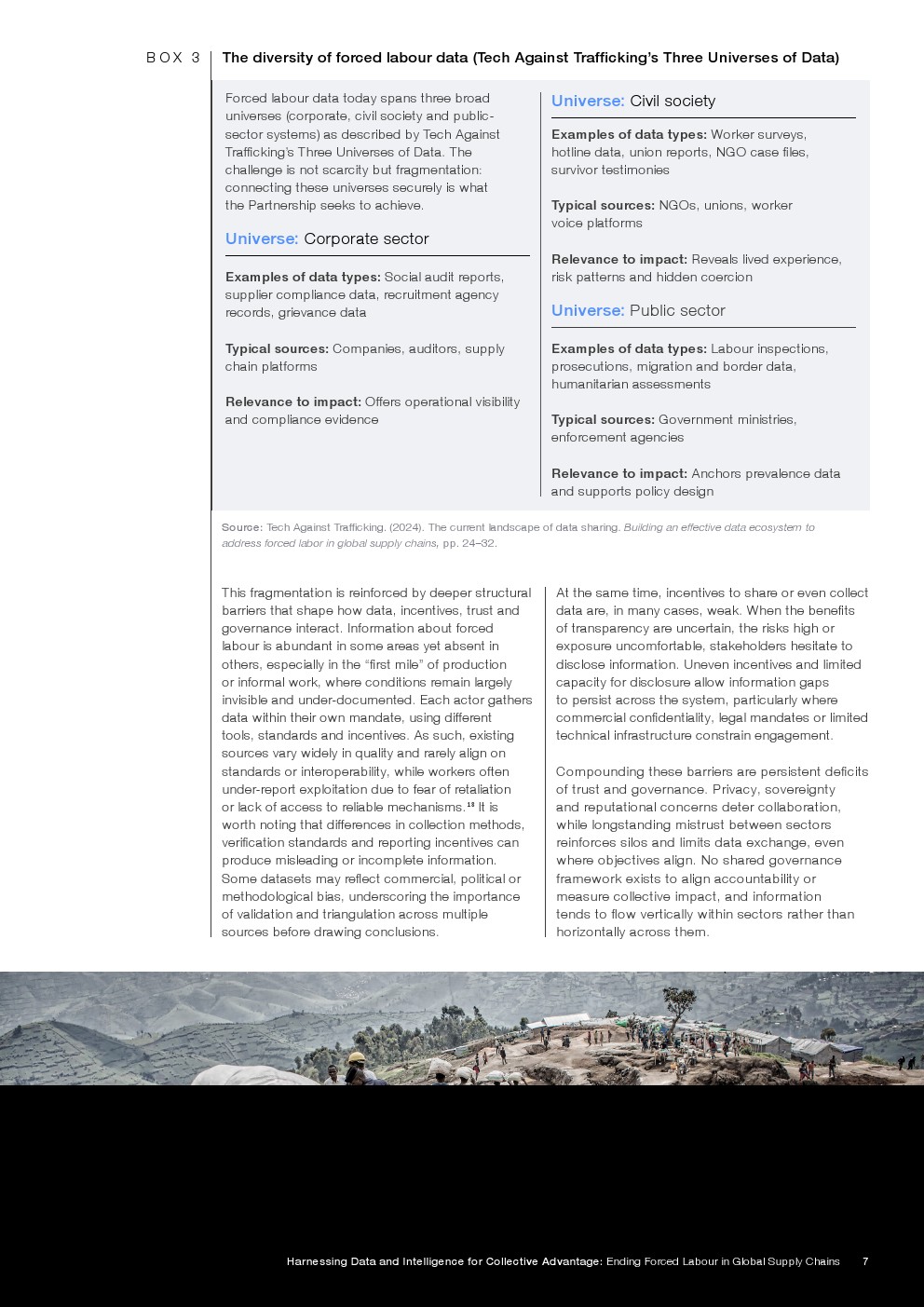 强迫劳动是一个系统性的全球挑战,需要系统性的应对行动。尽管历经数十年的改革、合规倡议、倡导和企业尽职调查,仍有近2800万人被困于跨行业、跨边界的胁迫性劳动中。其根源众所周知,但进展已然停滞,原因在于生态系统本身是割裂的:数据孤岛化、激励错位且信任匮乏。政府、企业和民间社会各自收集重要信息,但这些数据集鲜少互通。由劳动者生成的洞察,虽是最直接的证据来源之一,却往往最难以融入更广泛的系统。