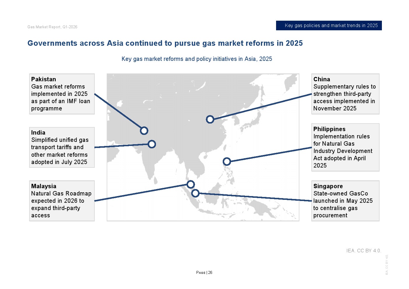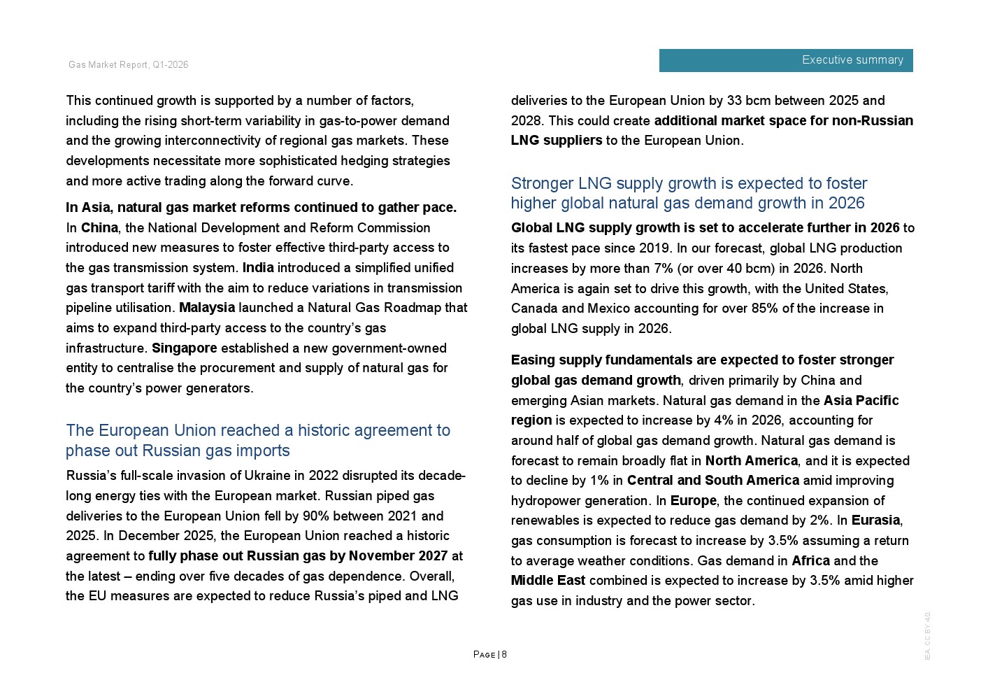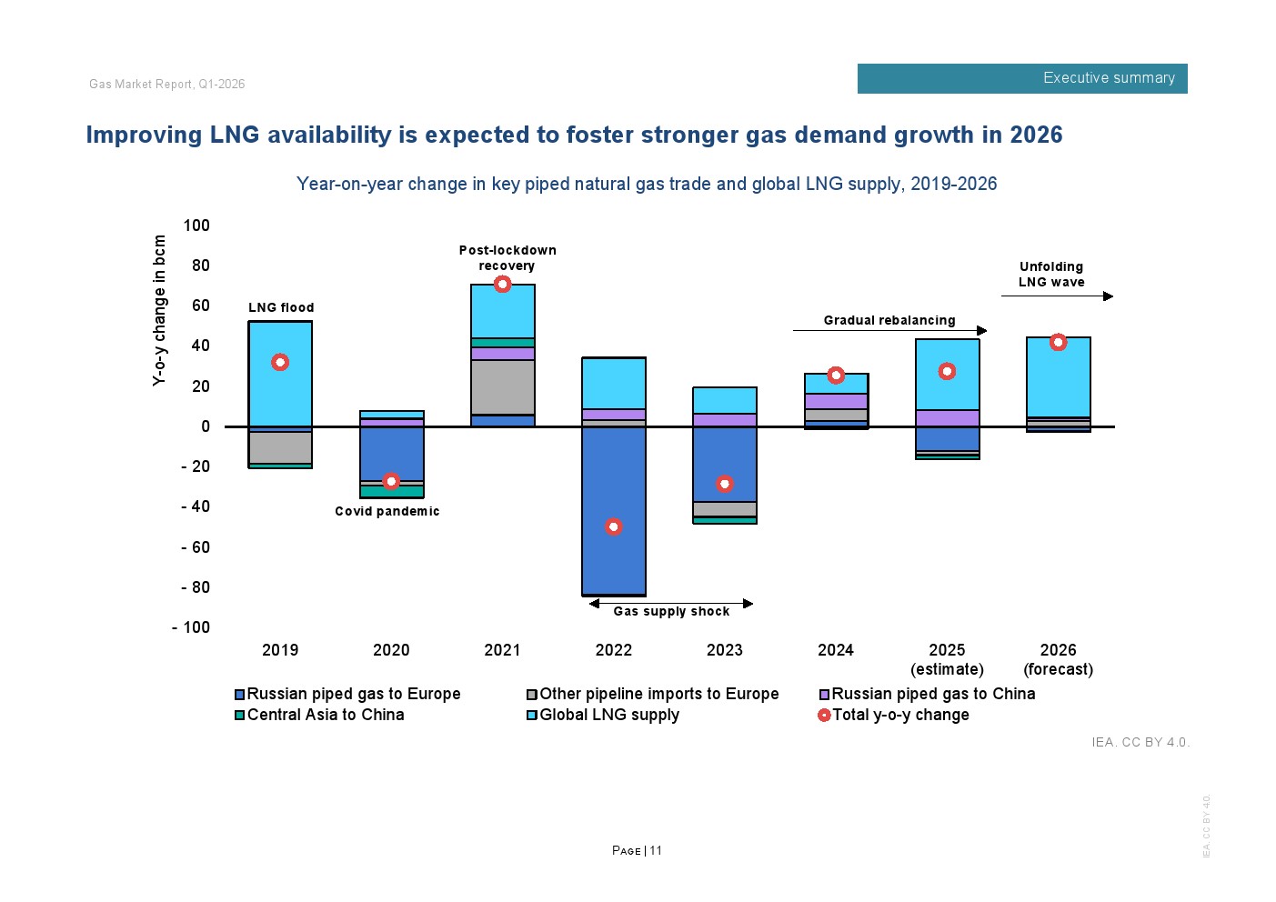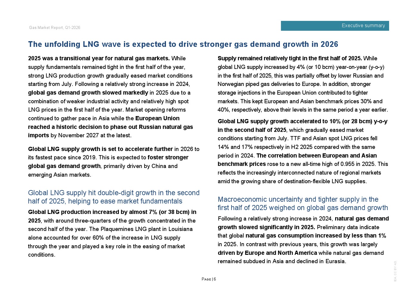 区域分化特征显著。2025年欧洲天然气需求增长3%,主要因风电、水电偏弱推动发电用气上升;北美需求增长约1%,寒冬推升建筑供暖负荷;欧亚地区需求下降约2%;亚洲整体需求基本持平,中国需求增长约1%,但LNG进口同比下降14%,约150亿立方米,显示国内产量增长6%以上及俄气管道气满负荷输送形成替代效应。非洲与中东合计需求增长2.5%,油转气推动电力用气回升。
