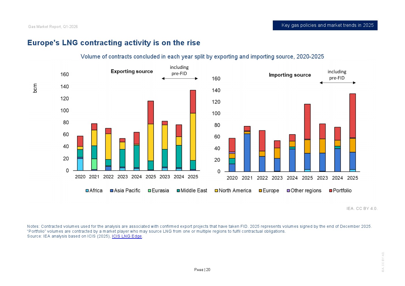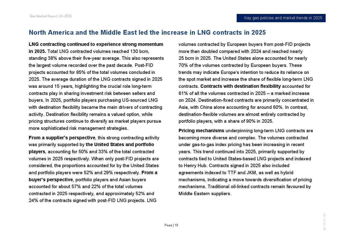 投资与合约周期同步升温。2025年全球新增LNG液化项目最终投资决定规模超过900亿立方米/年,为2019年以来第二高水平,其中美国占逾800亿立方米/年。全年新签LNG合约规模达1300亿立方米/年,创十年新高,平均期限约15年,61%为目的地灵活合约。欧洲买家签约量接近250亿立方米,同比翻倍,显示降低现货依赖的战略转向。