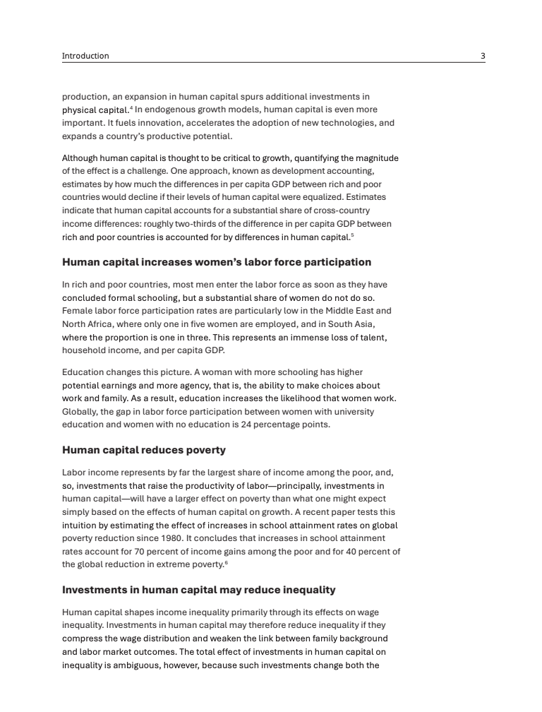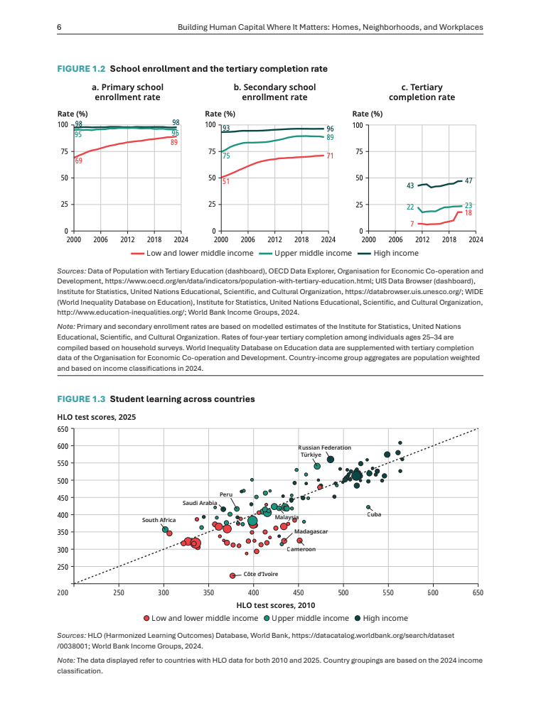 尽管过去二十年全球教育入学率显著提升,但人力资本积累在多数中低收入国家出现停滞甚至倒退 。