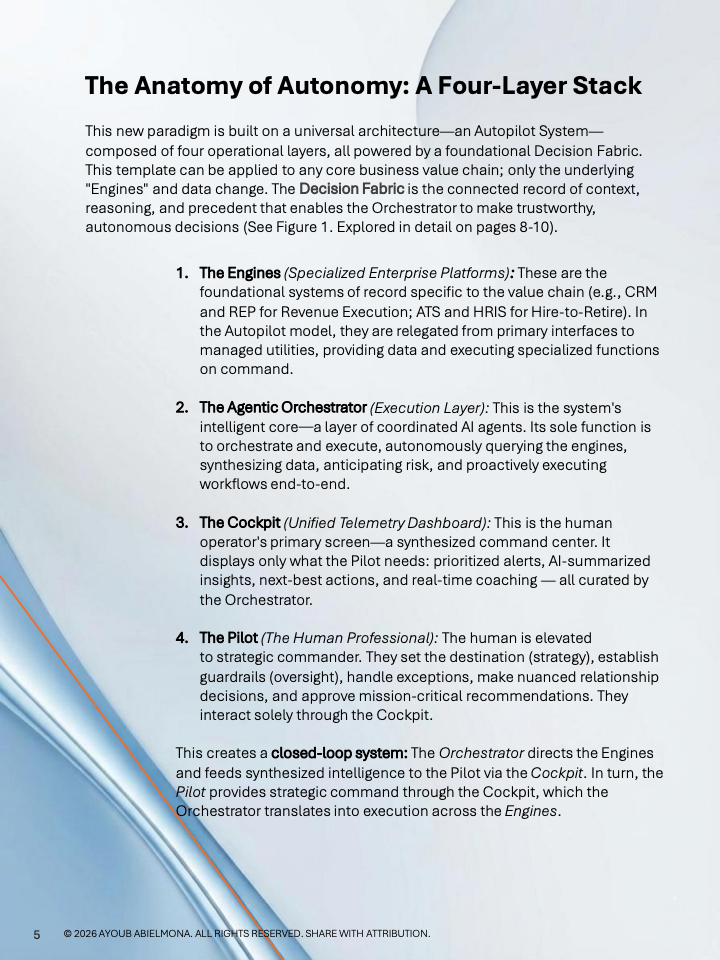 总体来看,数据所揭示的趋势十分明确。企业竞争正从工具堆叠转向执行层智能化,决策上下文正在成为新的关键生产要素。率先完成从Copilot向Autopilot转型的组织,将在成本结构、响应速度与长期规模优势上形成显著分化,并重塑未来十年的竞争格局。