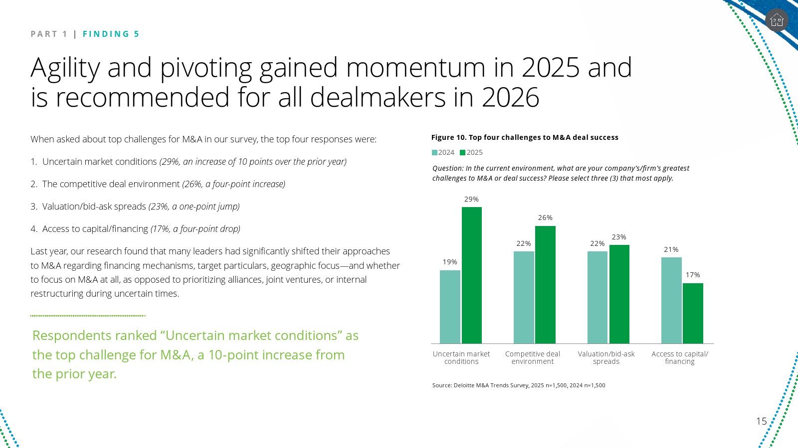尽管整体情绪偏乐观,企业对增长幅度的预期明显趋于谨慎。调查中“交易量显著增长”的预期较上一年下降16个百分点,而“适度增长”的预期上升17个百分点。这种预期收敛反映出企业在复杂宏观环境下更倾向于渐进式扩张,而非激进的并购周期。