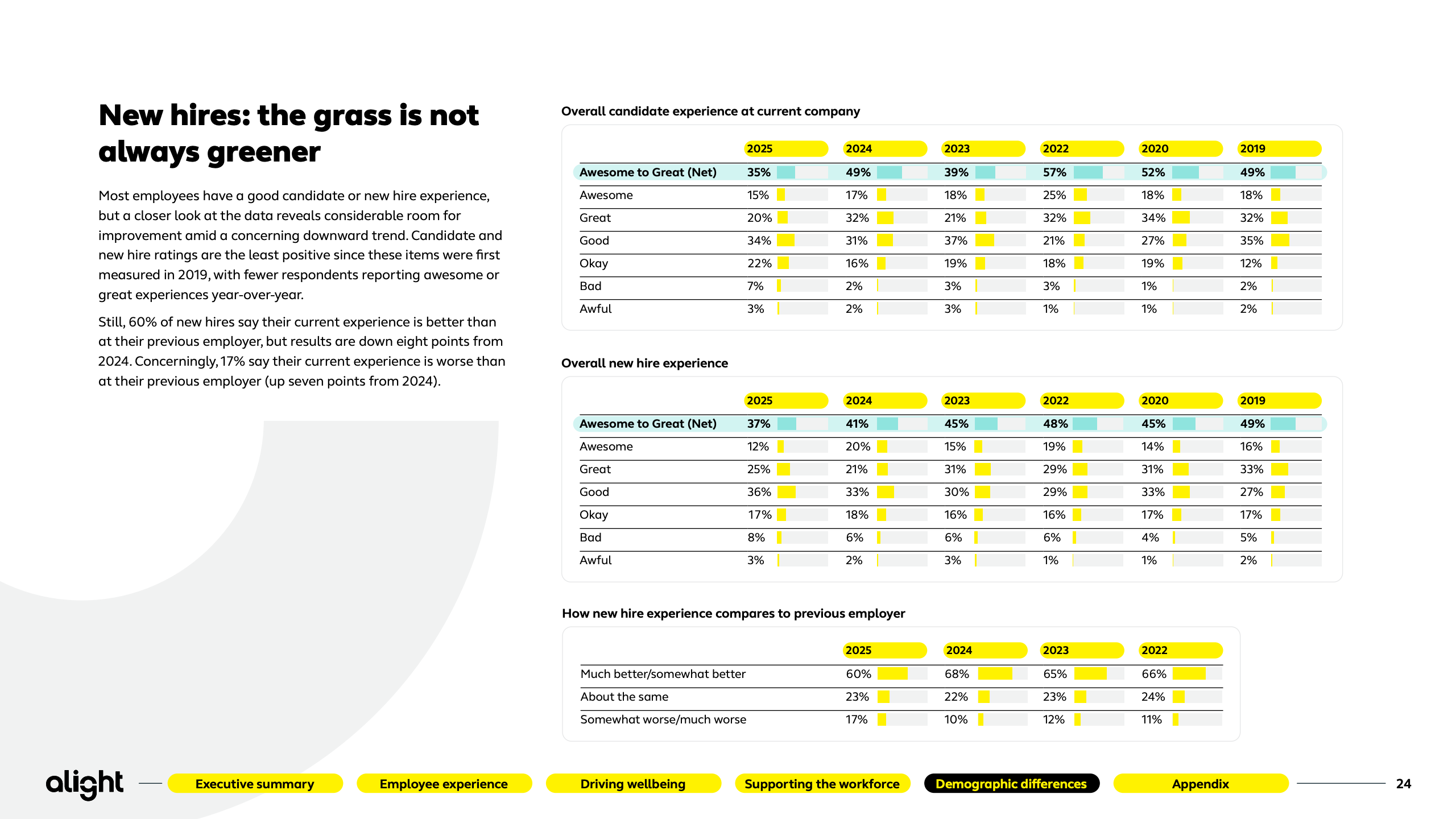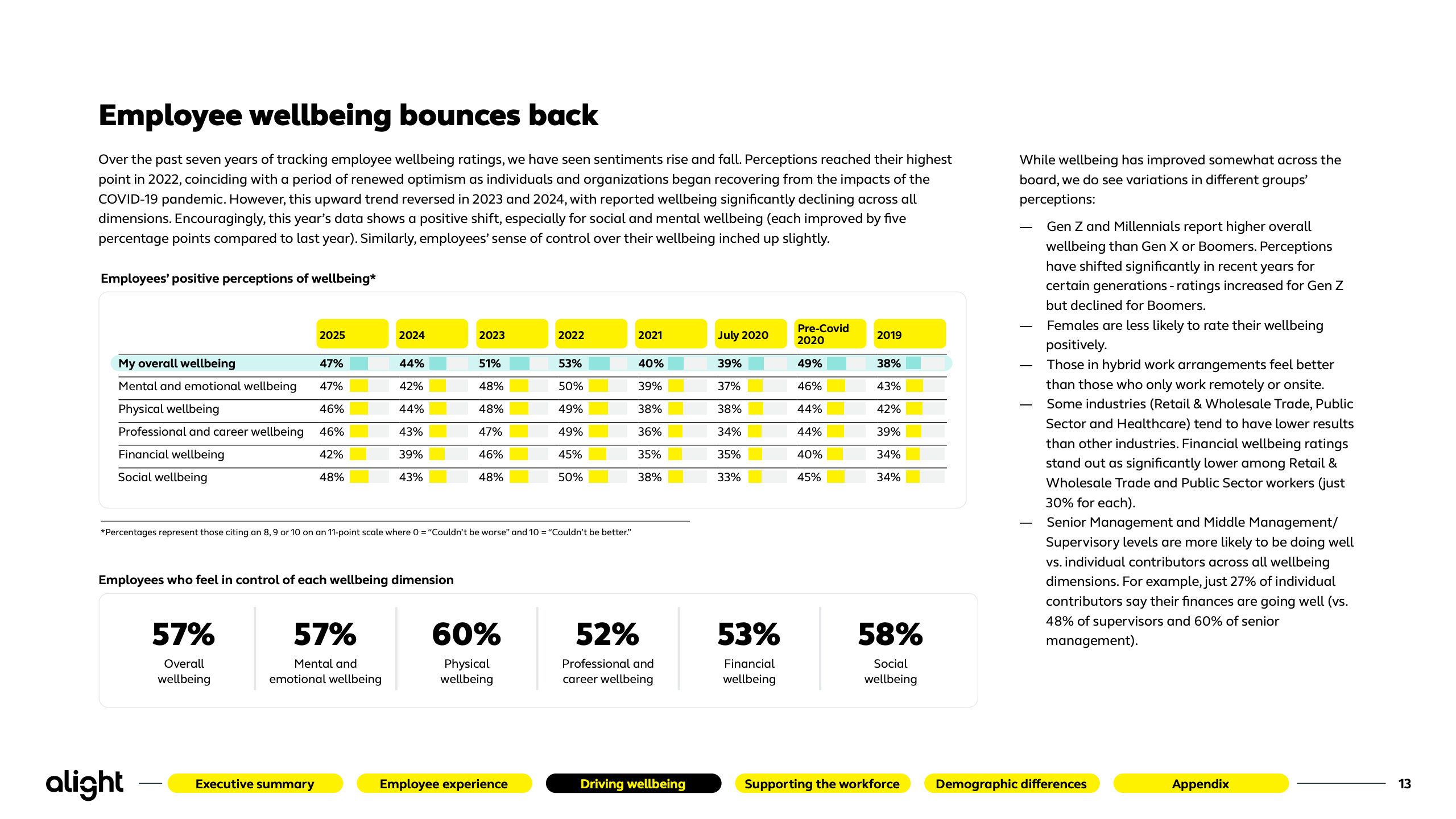 本报告基于Alight对2500名美国员工的系统性调研,覆盖不同年龄、行业与用工形态,刻画出2025年美国劳动力在体验、福祉与技术冲击下的真实心态轮廓。研究显示,员工整体情绪正在修复,但结构性矛盾依然突出。