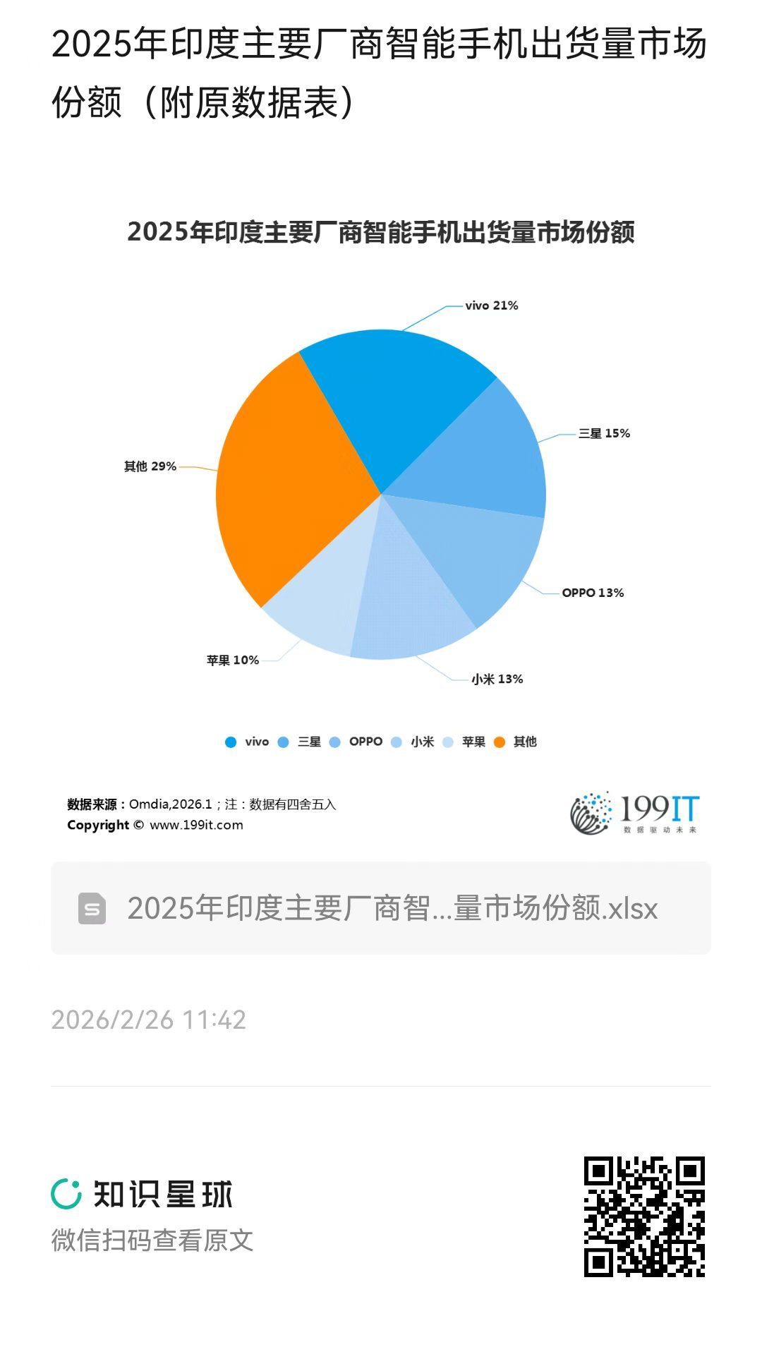 - 2025年Q4全球主要厂商智能手机出货量市场份额(附原数据表)