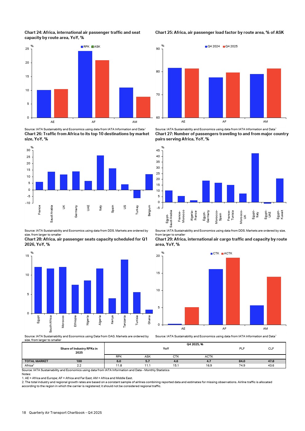 2025年第四季度,非洲航空公司实现客运需求同比增长11.8%,为各区域中最高。本季度运力同比增长11.1%,增速低于客运量增长,将客座率推升至74.9%,较2024年第四季度增加0.5个百分点。但仍低于行业平均水平。