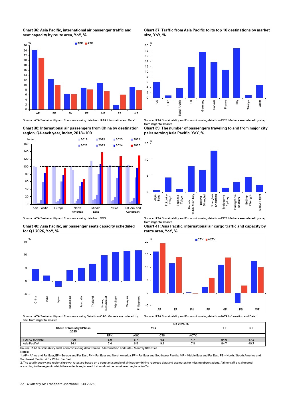 2025年,亚太地区航空公司的客运需求占全球收入客公里的1/3以上。2025年第四季度,客运需求同比增长7.4%,超过6.0%的全球增长率。运力同比增长6.5%,增速低于需求增长,将客座率推升至84.7%,略高于行业平均水平。