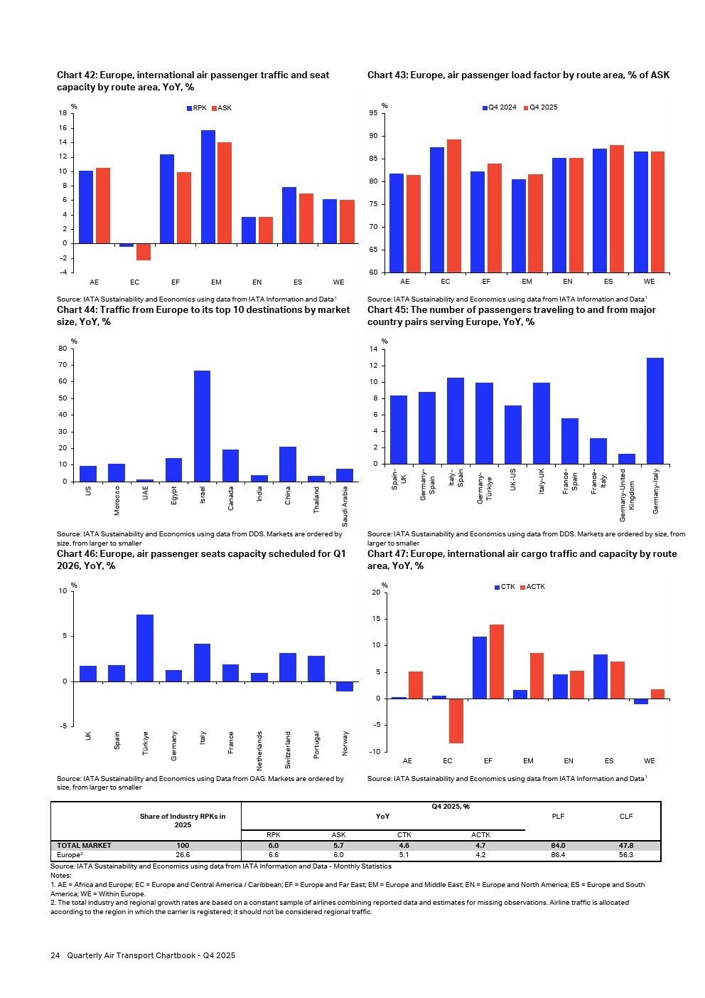 欧洲航空公司占2025年全球收入客公里的26%以上,是全球交通量的第二大贡献者。2025年第四季度,客运需求同比增长6.6%,运力同比增长6.0%。因此,客座率同比微增0.4个百分点,达到86.4%,为所有区域中最高。